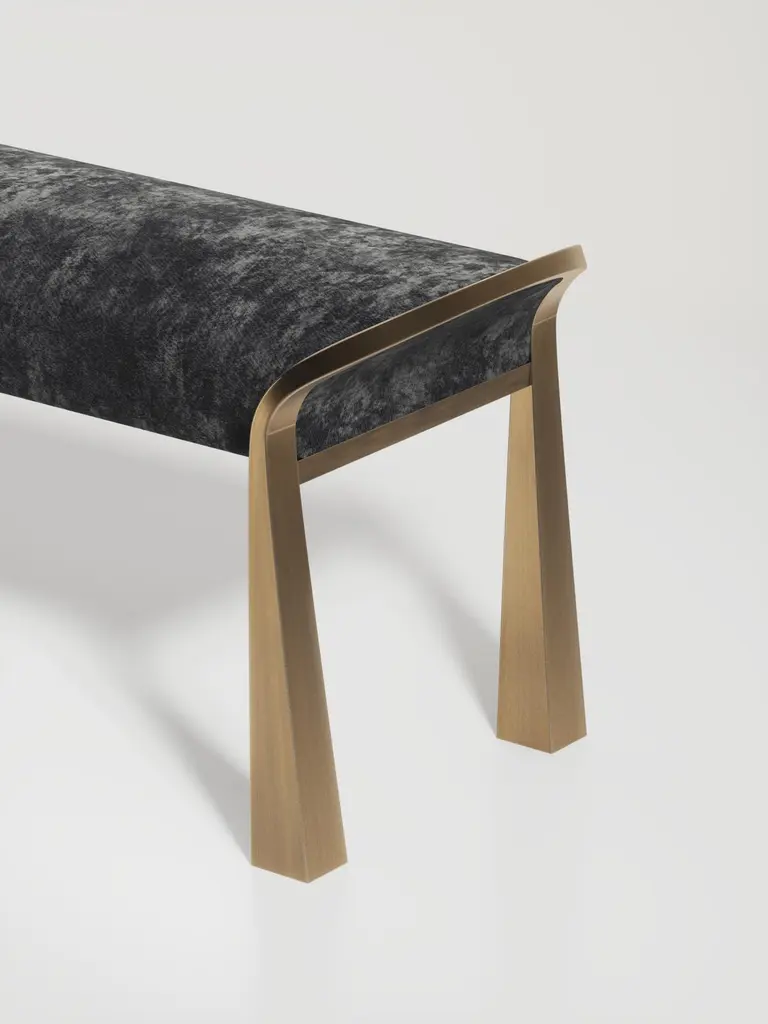 Velvet Upholstered Stool With Sculptural Brass Legs By R&y Augousti