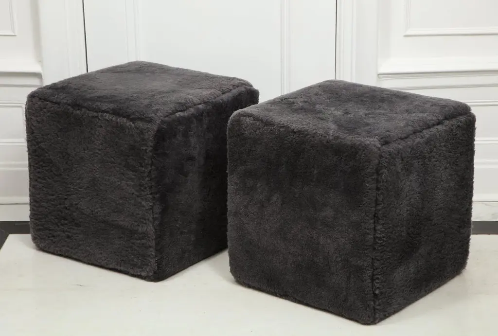 Venfield Custom Pair Of Shearling Cube Foot Stools/ottoman