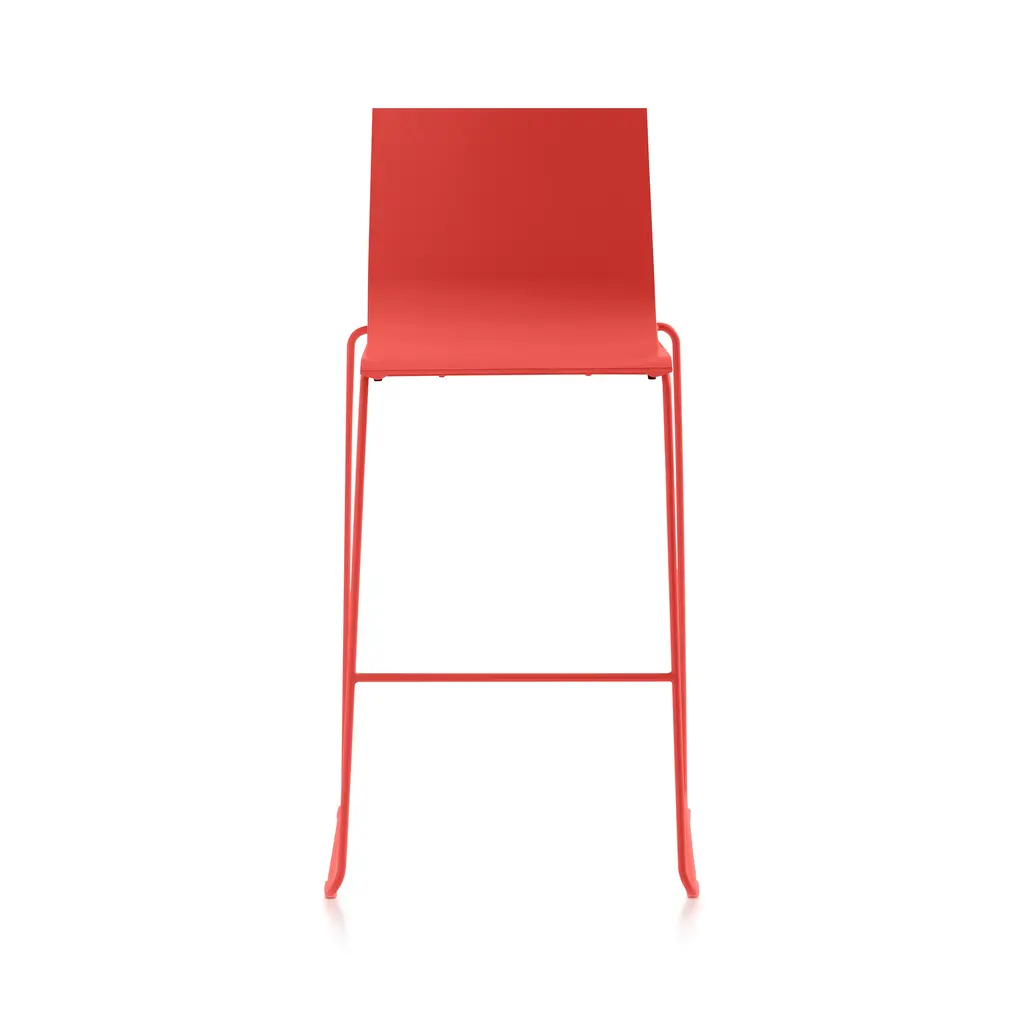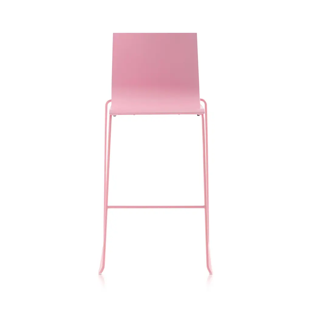 We present our chameleon: the Vent outdoor chair, an item that seems to change its appearance depending on the color you choose. In neutral tones like white, light grey or anthracite, it comes across as a discreet, sober, elegant design. But in colors like pink, red, blue or yellow it can become that colorful, fun item that's clamoring to be noticed. This is the version with runner legs. Its simple, austere look means it can be fitted in with all kinds of decorative options. That's why Vent is so versatile as an additional piece that can be combined with dining tables in all sorts of different styles. This product is highly weather resistant, as the seat and back are made from one single piece of rigid polyurethane and the legs are steel tubes. Features