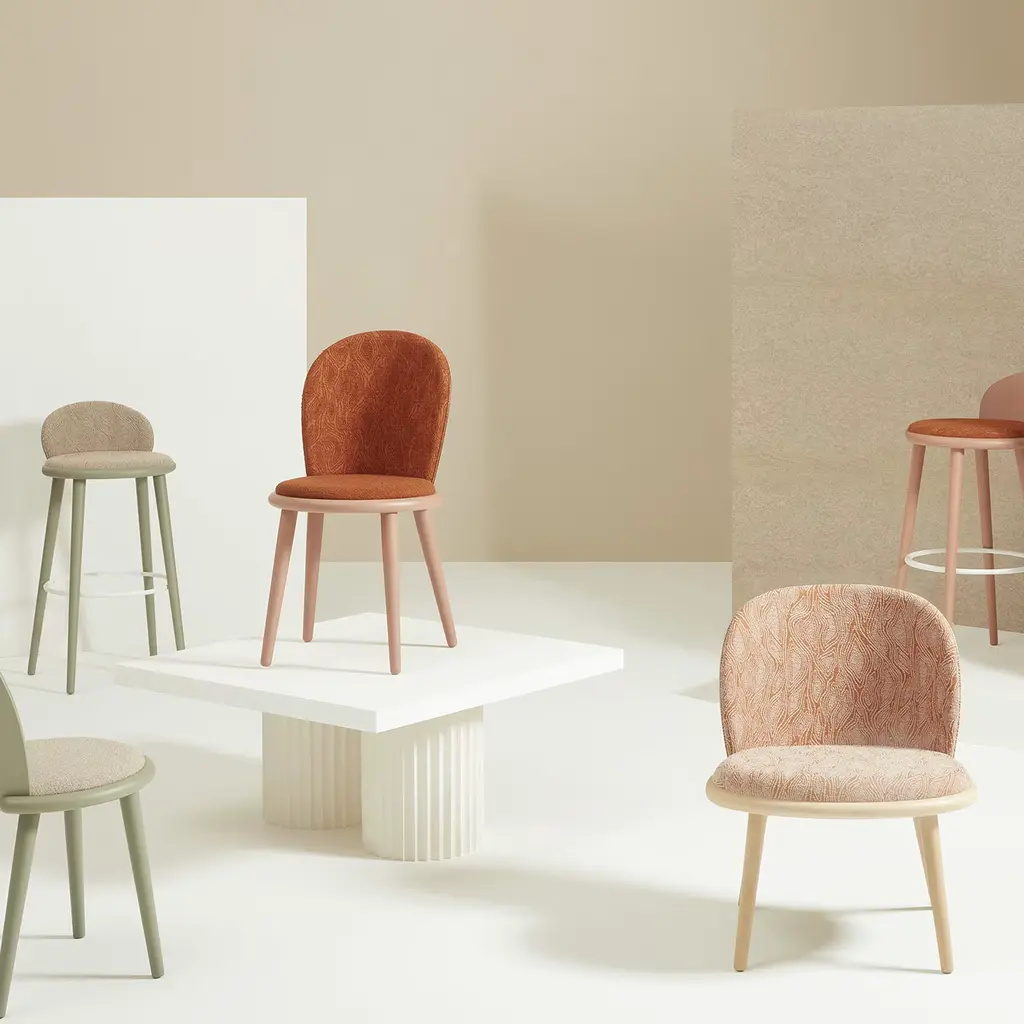 An exquisite design from the Veretta Collection designed by Cristina Celestino, this stool will make an ideal complement to a modern interior space, particularly when paired with others from the same series. Upholstered on the rounded seat and curved low backrest, it is handcrafted of pastel green-lacquered beechwood, enriched with white-colored footrests. Customizable upon request to the Concierge.