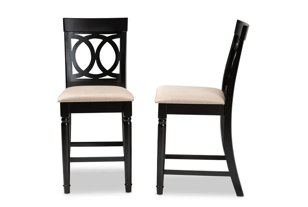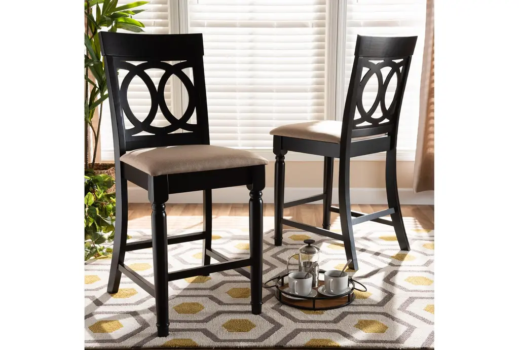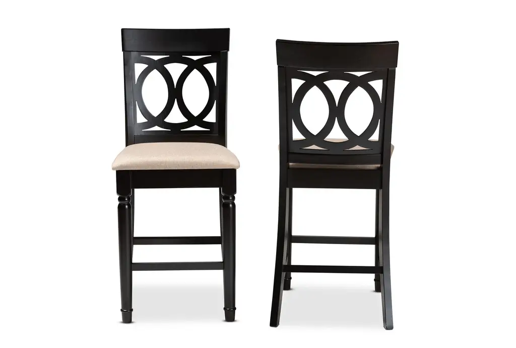 Verina Modern Sand Upholstered Espresso Brown Wood 25" Counter Height Stool Set Of 2
