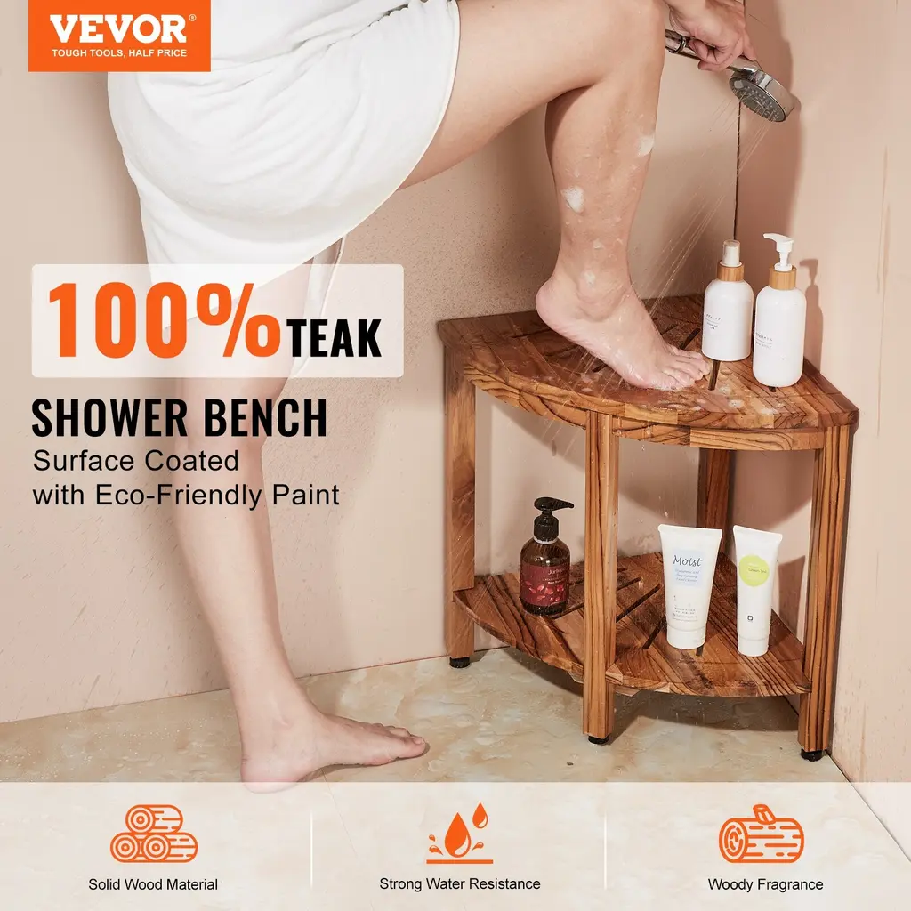 Vevor Corner Teak Shower Bench Shower Stool For Inside & Outside Shower, For Bathroom - 18.5" Height 15.5" Radius - 500 Lbs