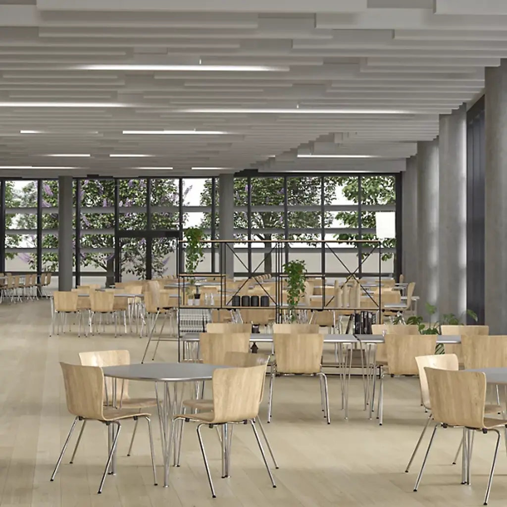 The Vico Duo Stool from Fritz Hansen shares the first part of its name with its designer, Vico Magistretti. It has a durable wood veneer shell that gives it a natural look. The chair’s tight lines and simple, armless profile give it contemporary design elements. This Scandinavian-style fixture is well-suited for the hospitality space, as its steel frame adds durability and keeps you nicely elevated. The stool is stackable with others that are likewise designed, up to 4 stools high.