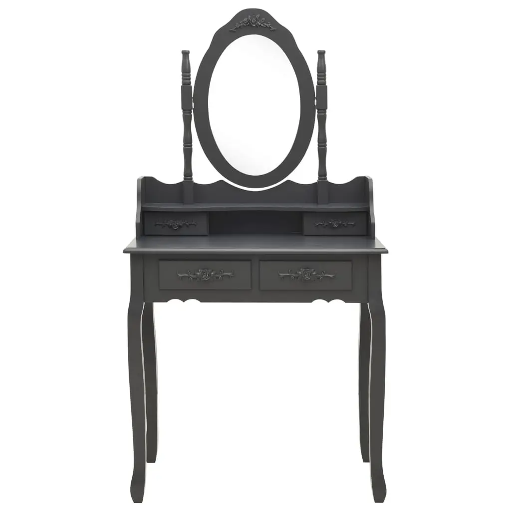 Vidaxl Dressing Table Set With Stool Grey 29.5x27.2x55.1" Paulownia Wood
