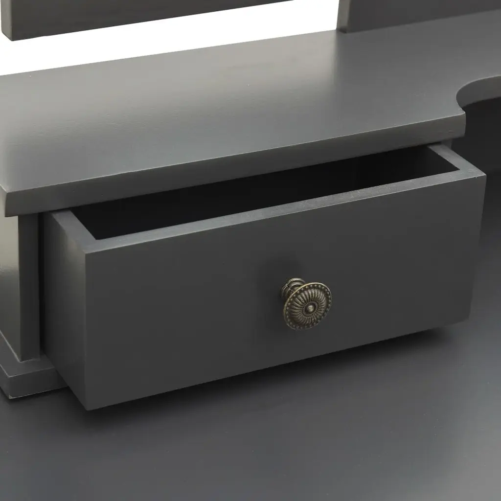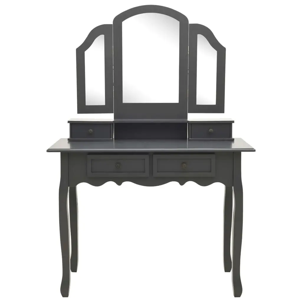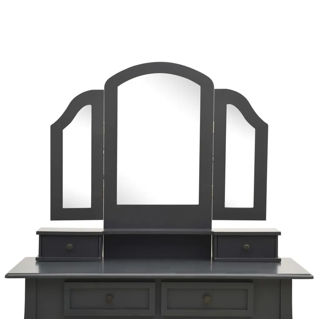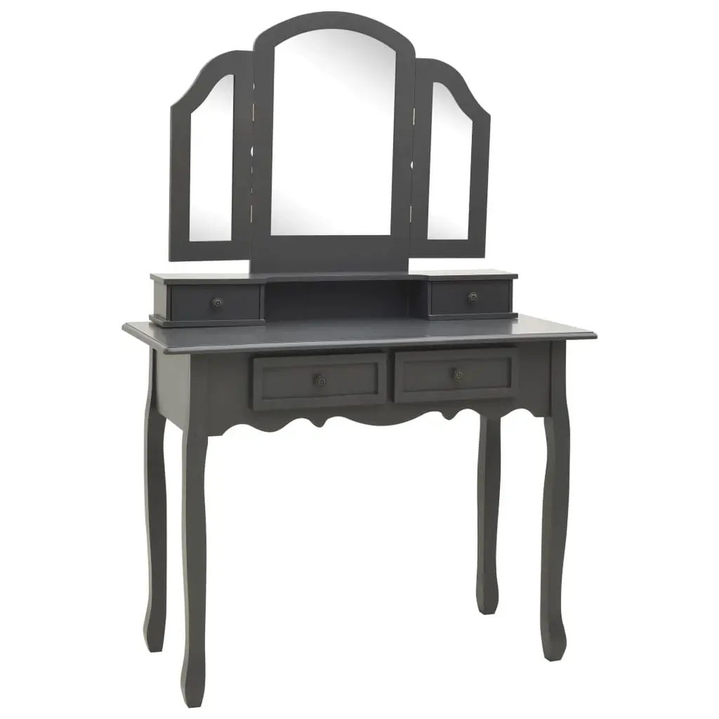 Vidaxl Dressing Table Set With Stool Grey 39.4x15.7x57.5" Paulownia Wood