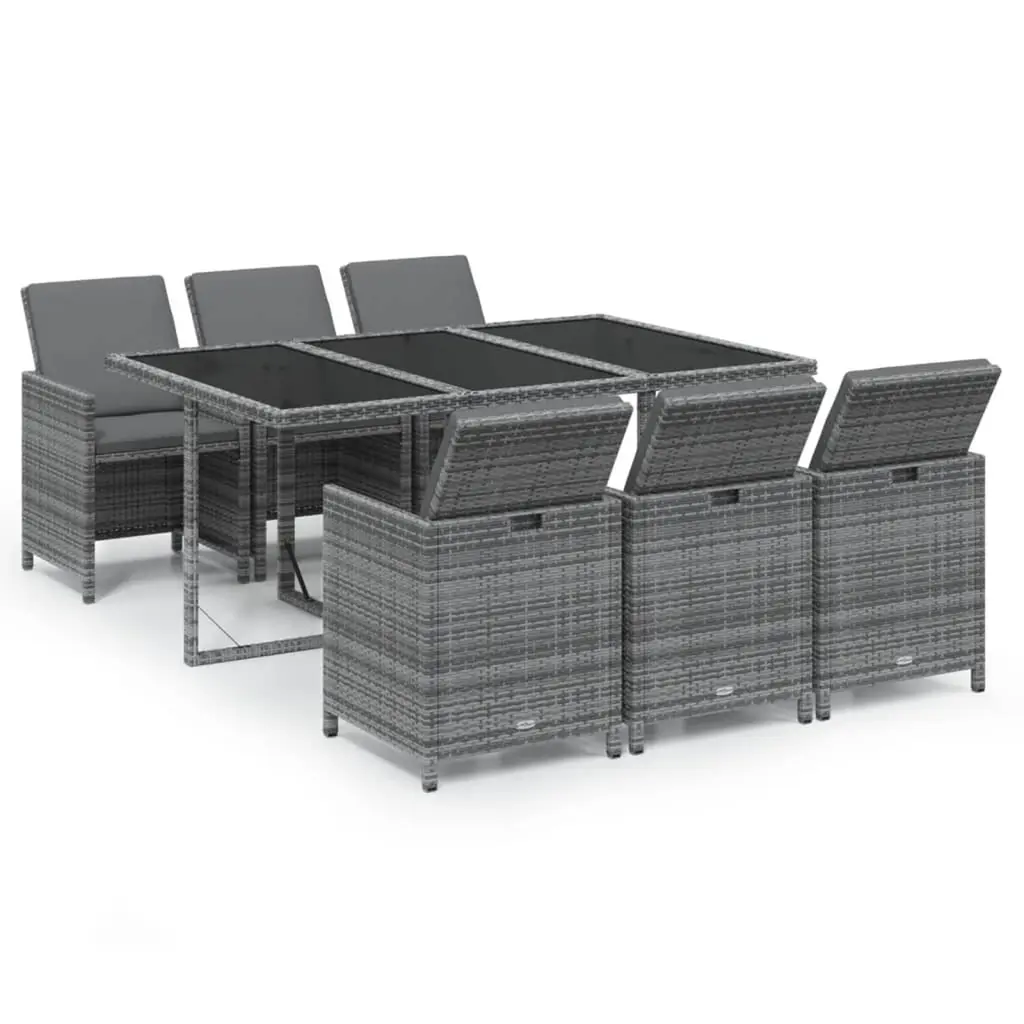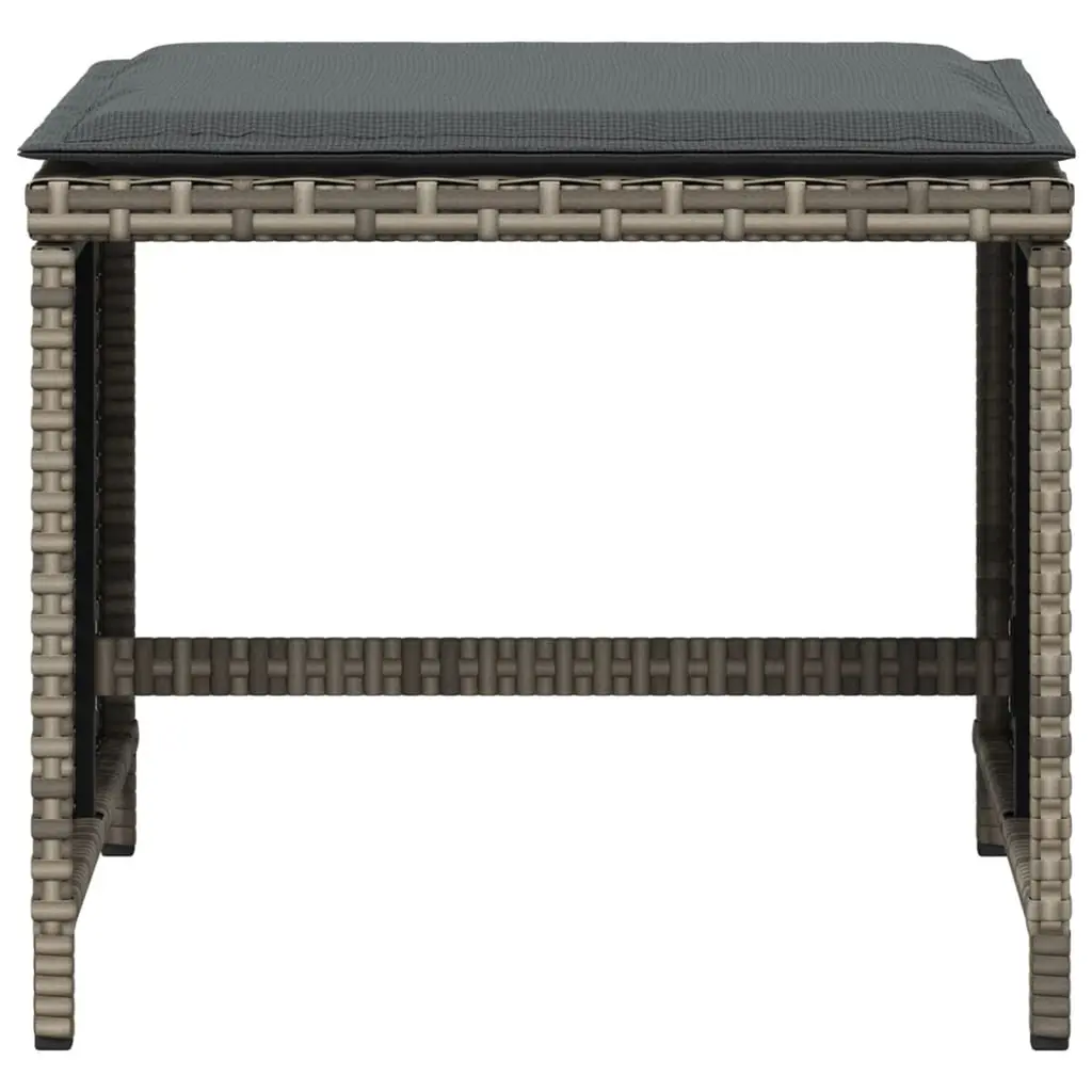 This set of grey garden stools is a great mix of style and practicality. They're comfy for outdoor gatherings and have a sleek design that fits perfectly into any balcony, conservatory, or sunroom, making it a great spot to chill and hang out. Stylish Design: The contemporary look of these garden stools adds a touch of class to any outdoor area while being super practical. Perfect as extra seating or just to brighten up the space. Comfort Equipped: Each stool comes with a lovely cushioned seat, making lounging much more enjoyable, so you can spend longer outside. Durable Material: Made from UV-resistant synthetic rattan and sturdy powder-coated steel, these stools are built to weather various conditions, ensuring they'll last. Easy Maintenance: The cushions come with a handy zipper, making it easy to take them off and wash, keeping everything nice and tidy. Compact Size: With dimensions of 16.1 in x 16.1 in x 14.2 in, these stools fit snugly in smaller spaces, making them perfect for patios, balconies, or gardens.
