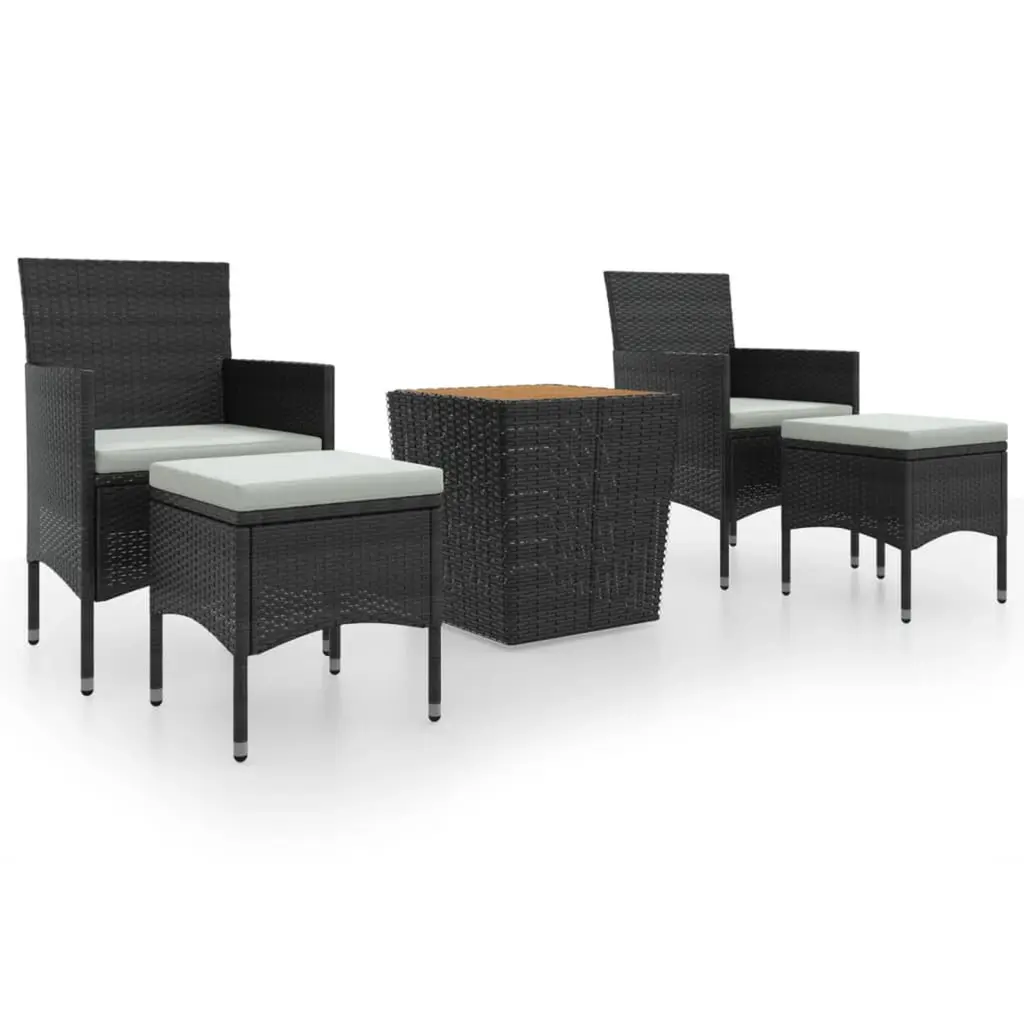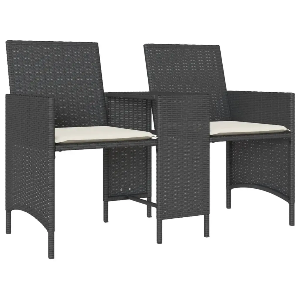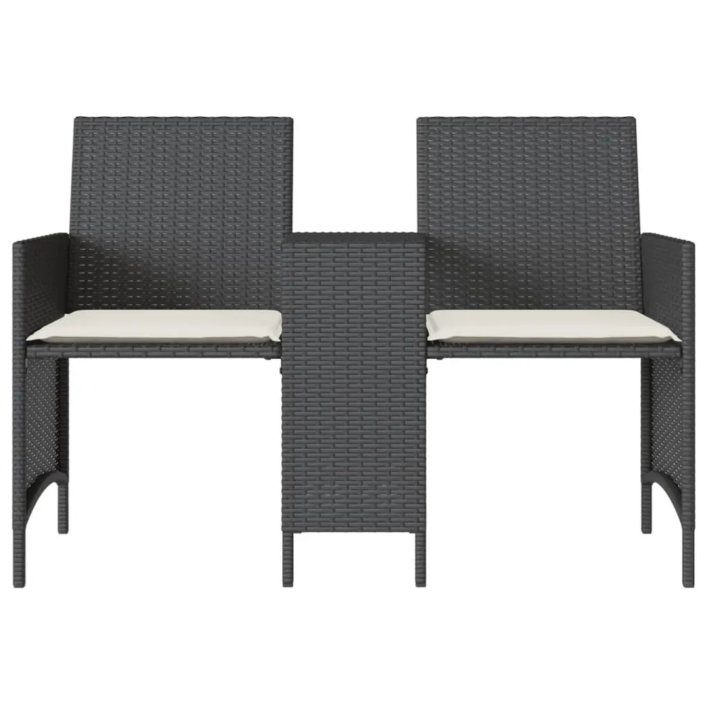 Vidaxl Patio Sofa 2-Seater With Table And Stools Black Poly Rattan