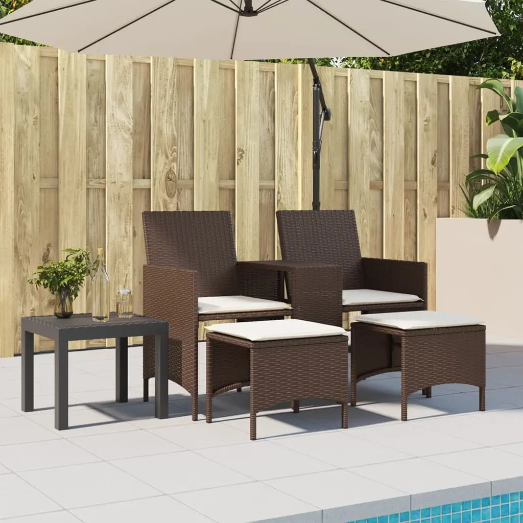 Vidaxl Patio Sofa 2-Seater With Table And Stools Brown Poly Rattan