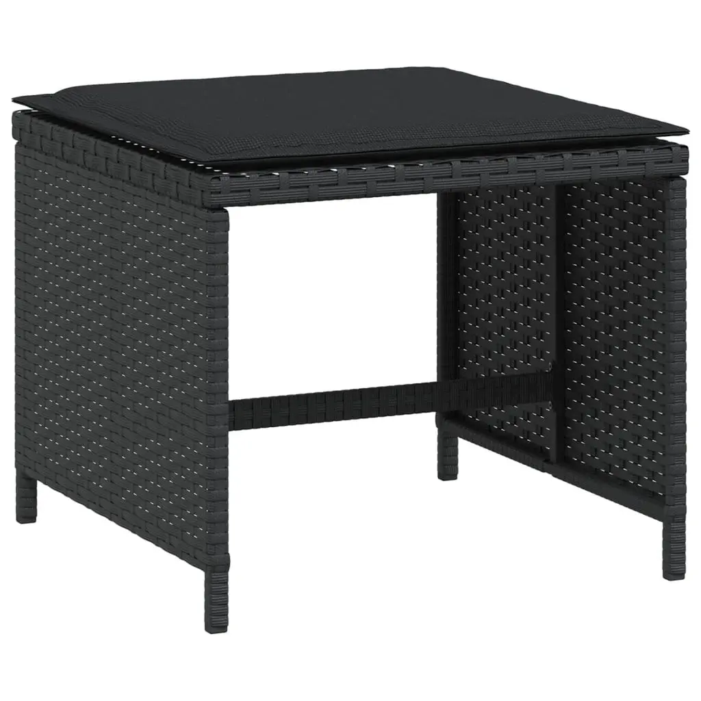 Vidaxl Patio Stool Black Pe Rattan, Powder-Coated Steel, Foam