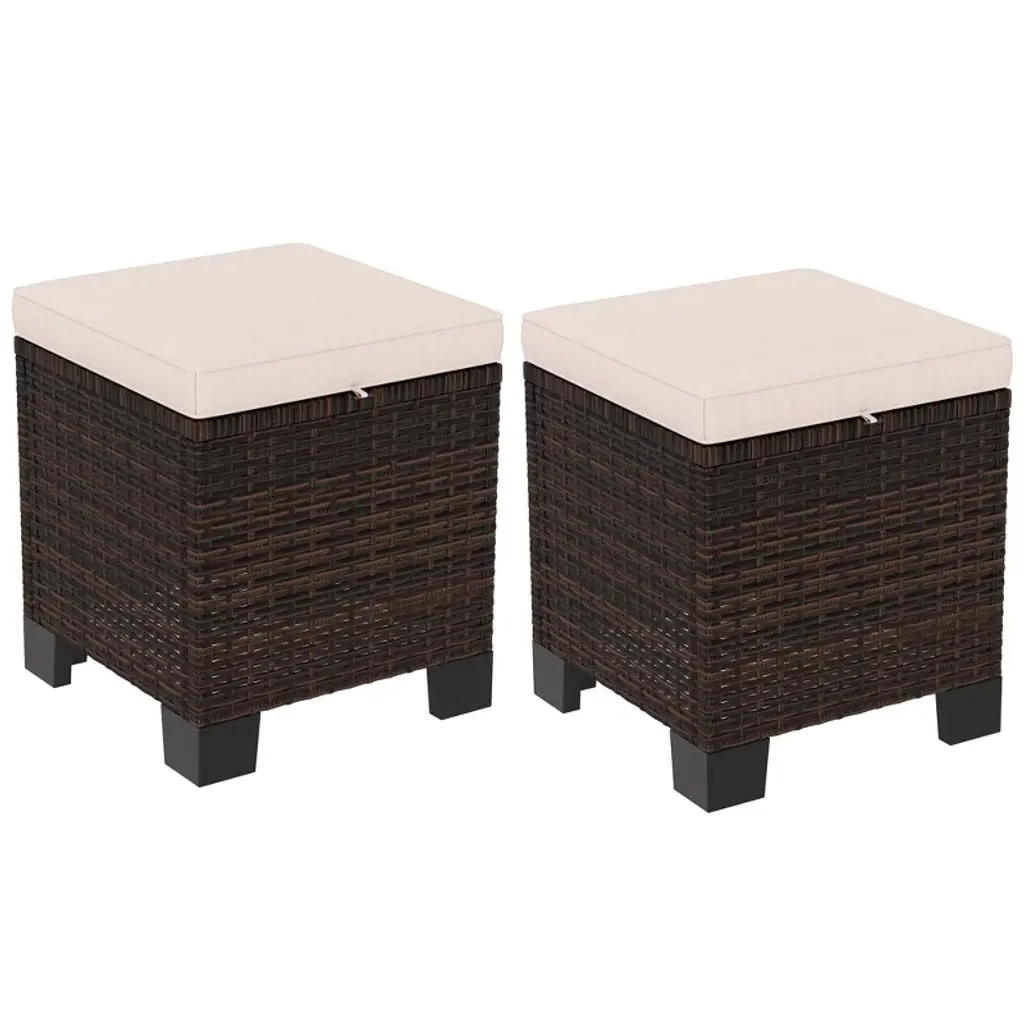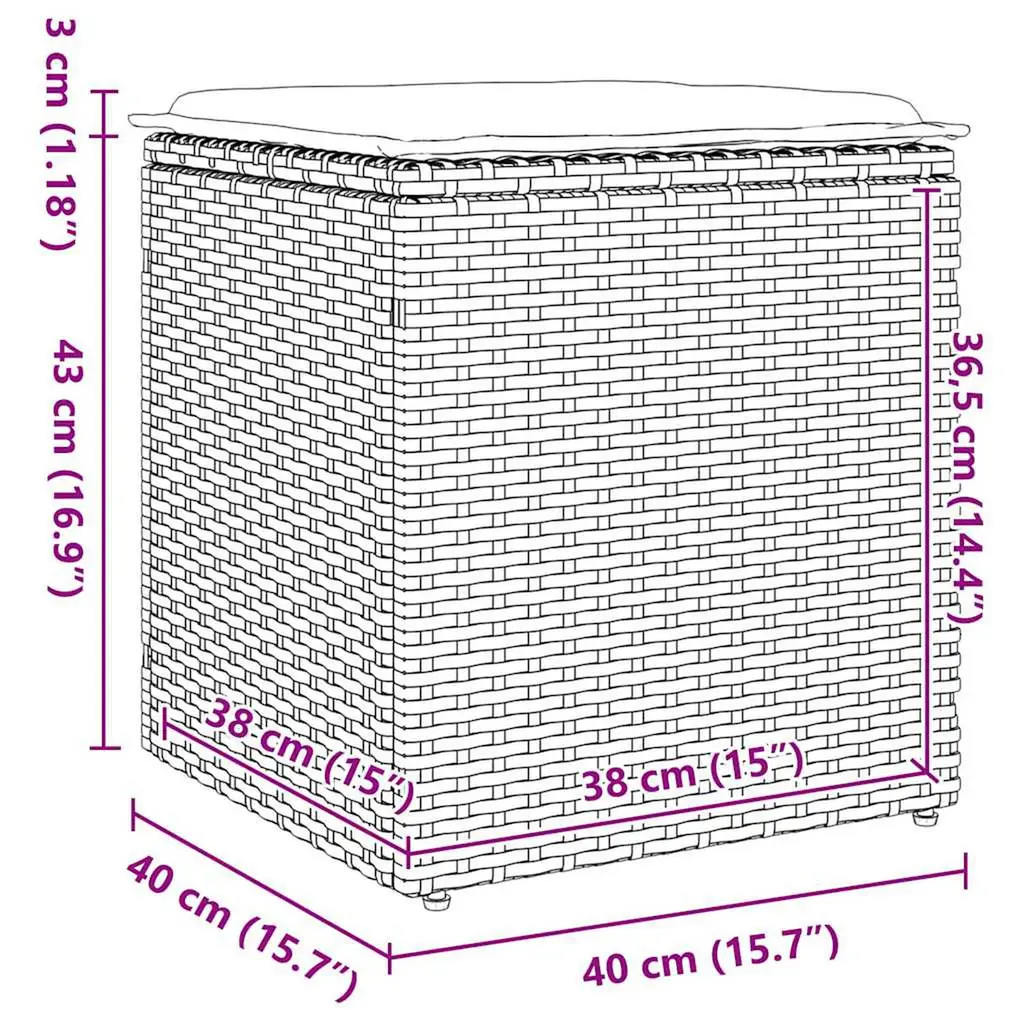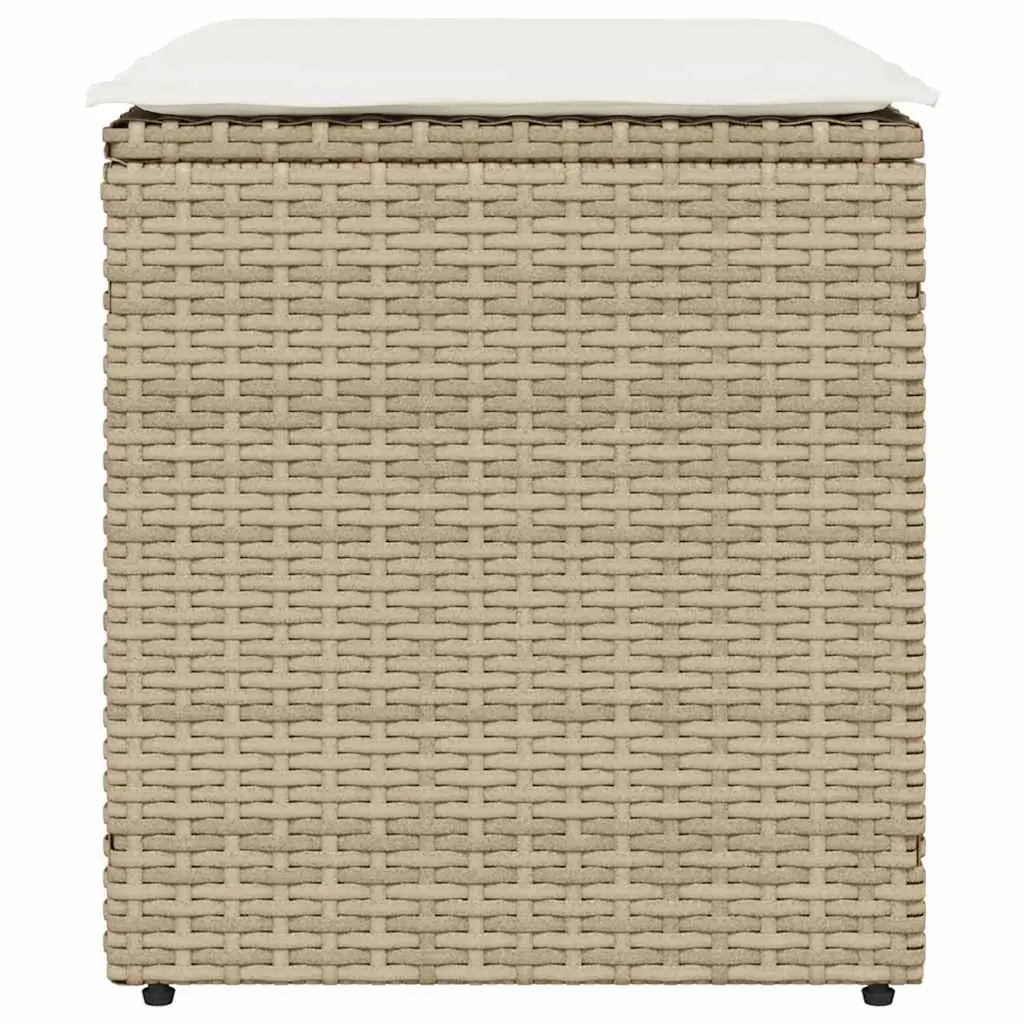 Vidaxl Patio Stools With Cushions 2 Pcs Beige 15.7x15.7x16.9" Poly Rattan