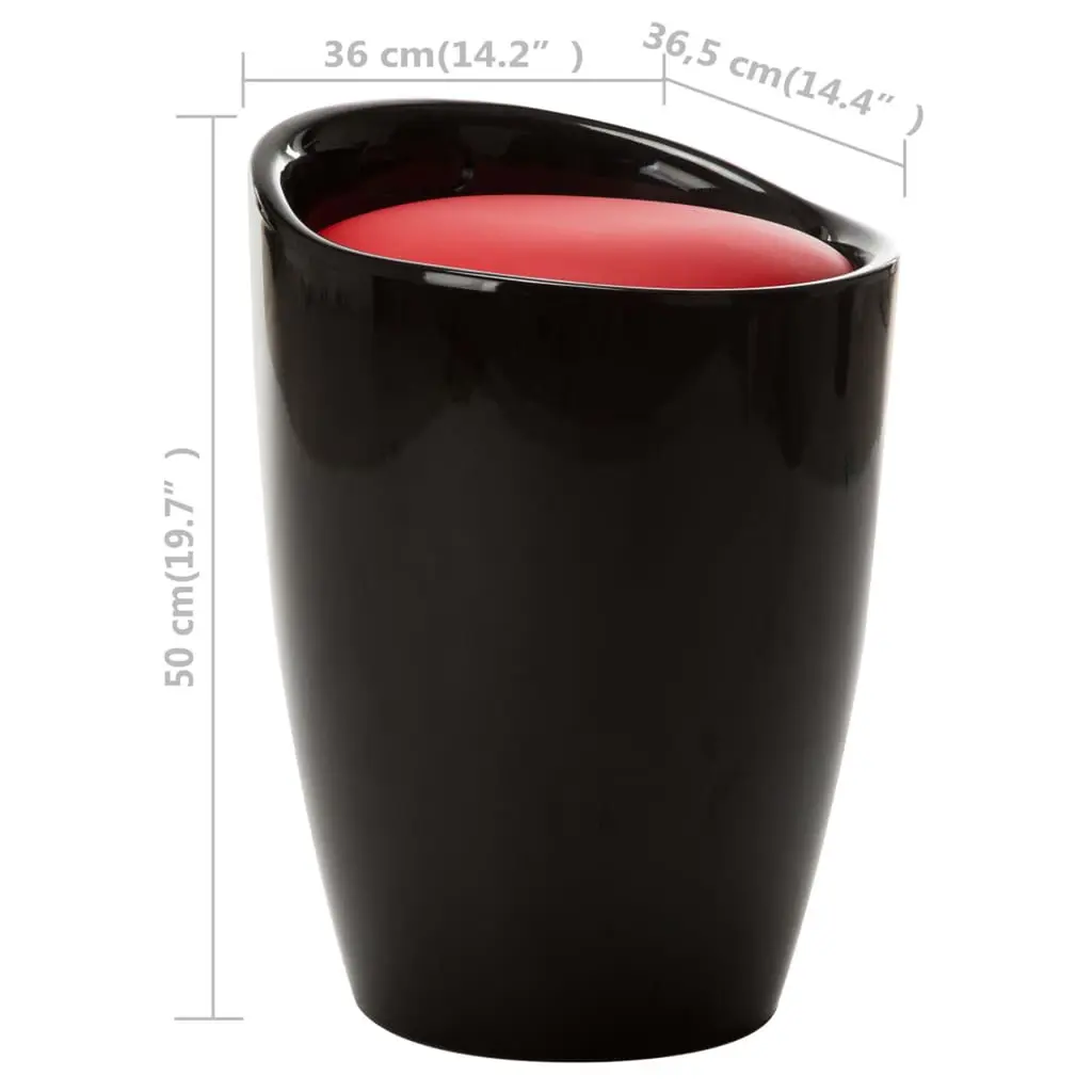 Vidaxl Stool Black And Red Faux Leather And Plastic Compact Storage
