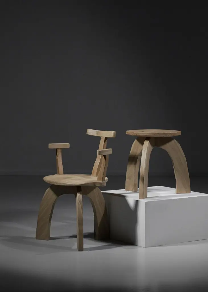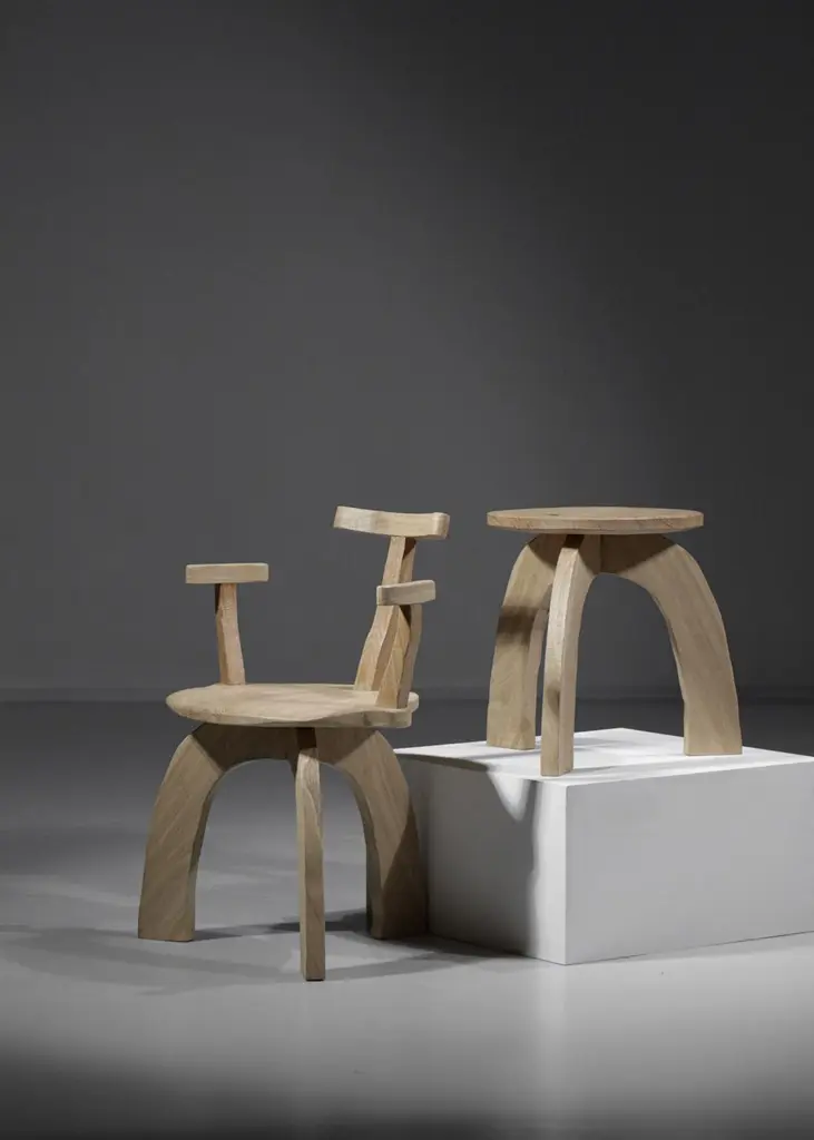 Vincent Vincent Stool In Solid Oak Ethnic Design