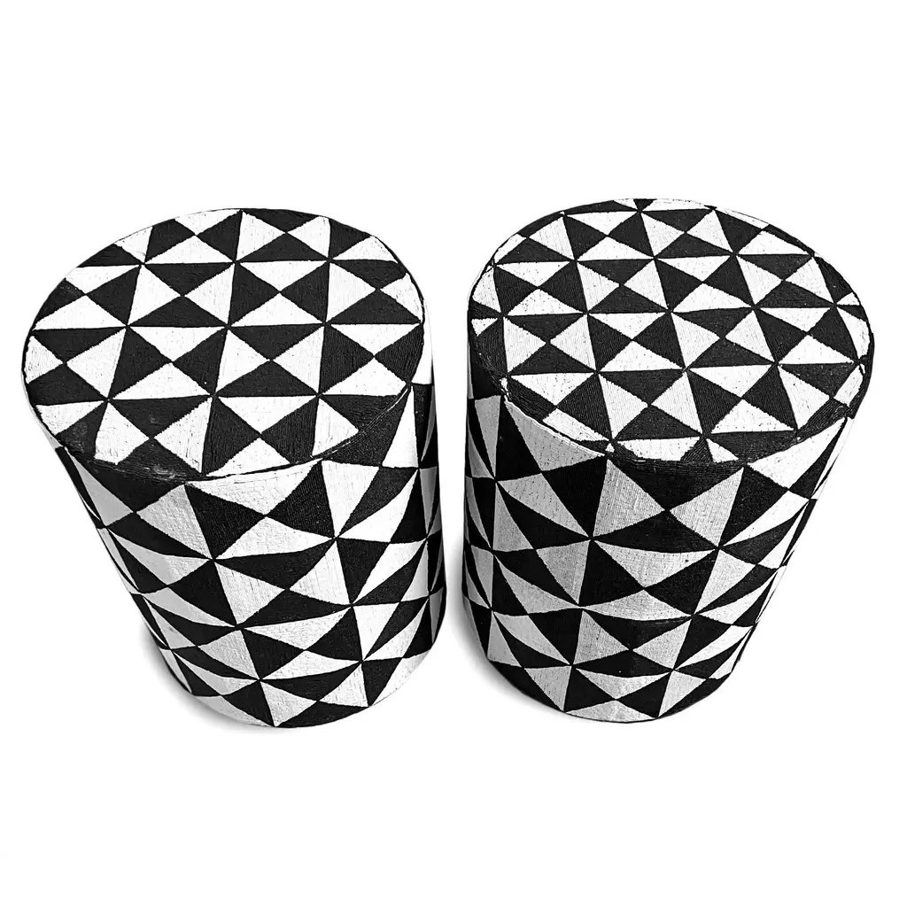 West African vintage black and white patterned hand beaded tribal round stool or side table from Yoruba Nigeria. Thousands of tiny beads cover these artistic beautiful and functional art pieces. Each sold individually.