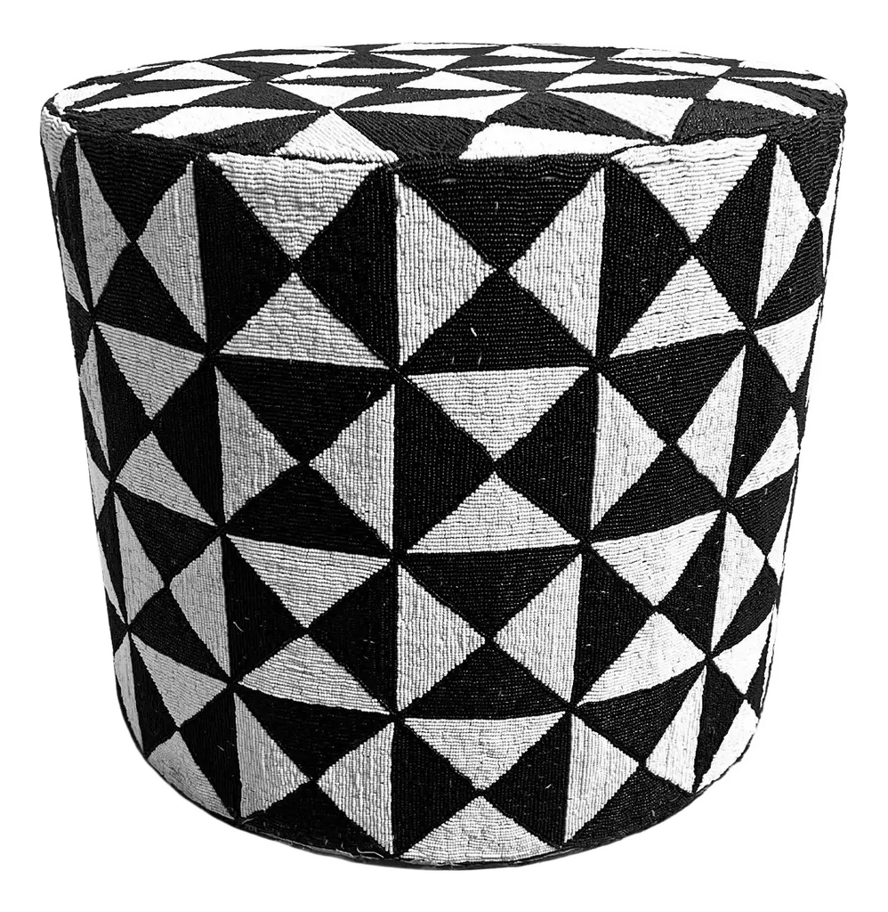 Vintage Black & White Yoruba Beaded Stool Table Large