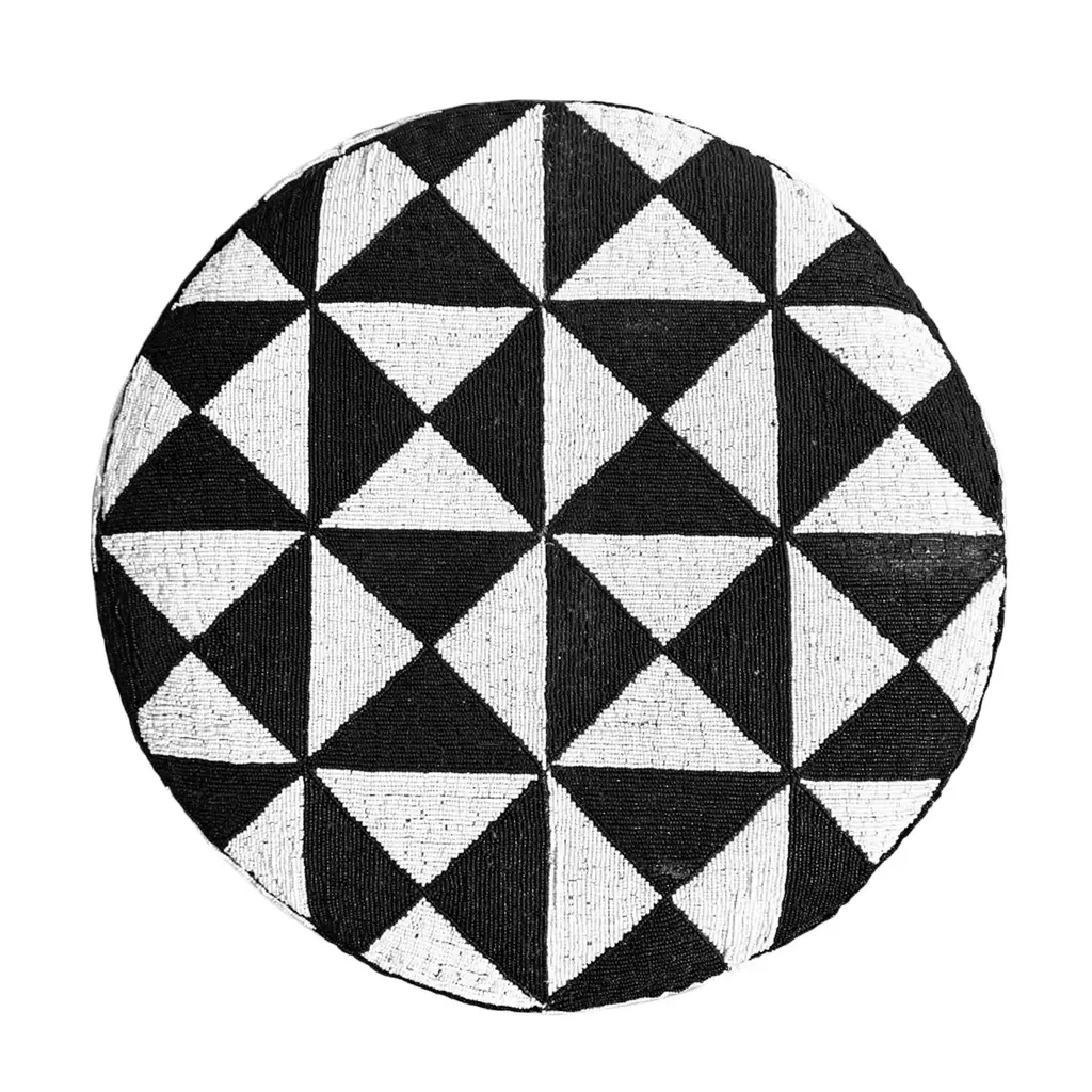 Vintage Black & White Yoruba Beaded Stool Table Medium