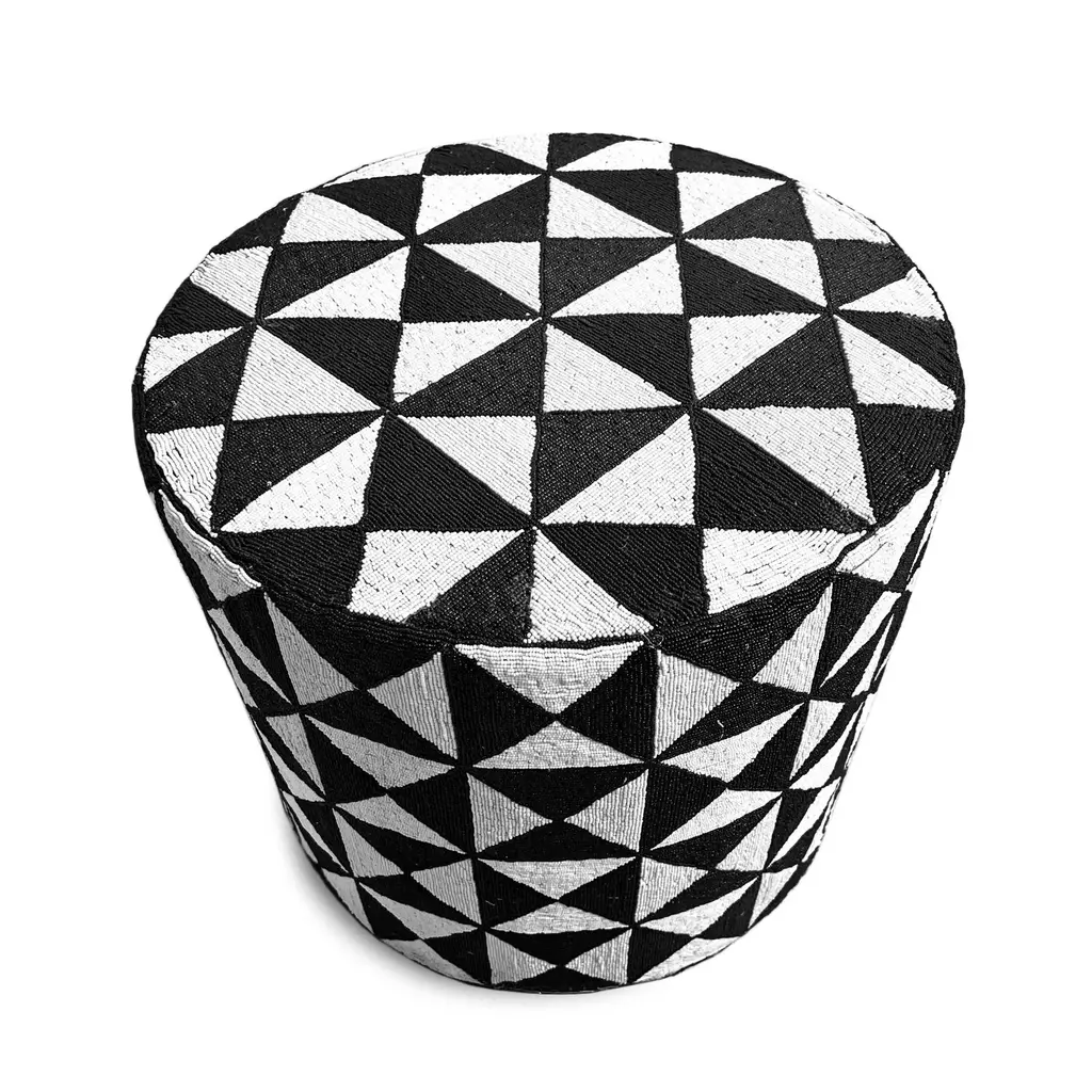 Vintage Black & White Yoruba Beaded Stool Table Small