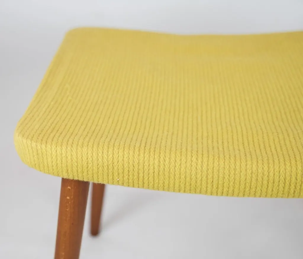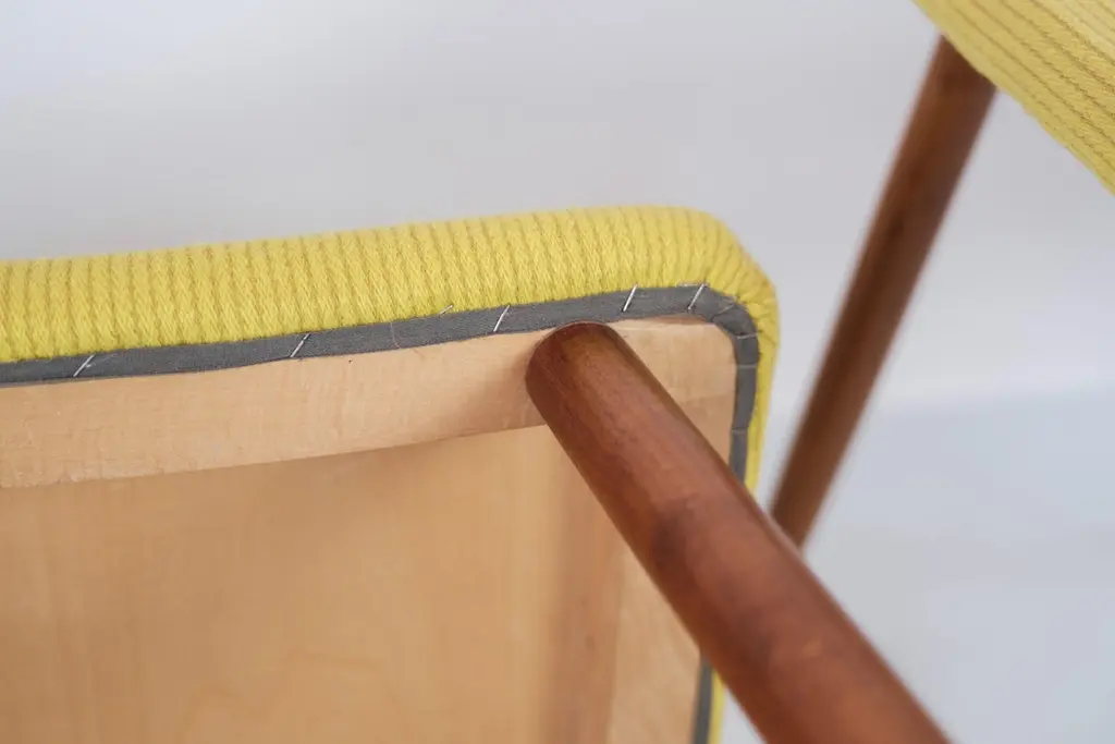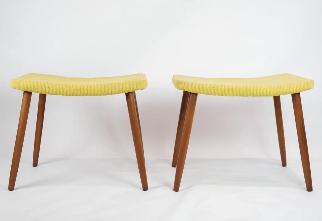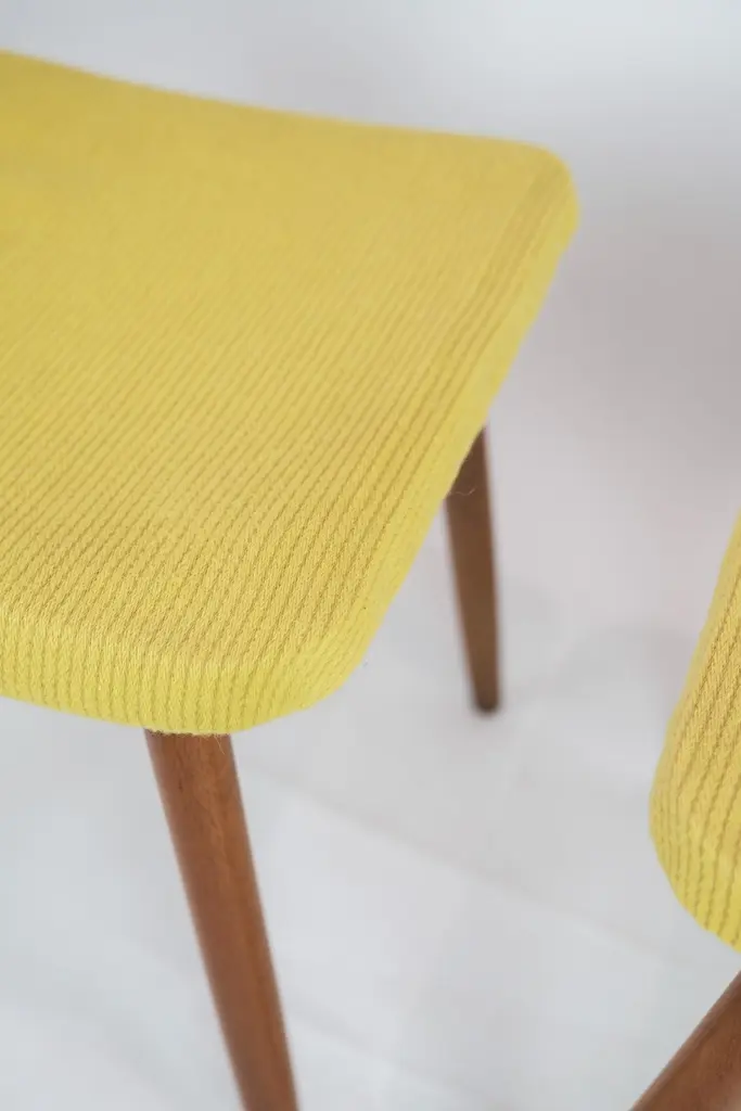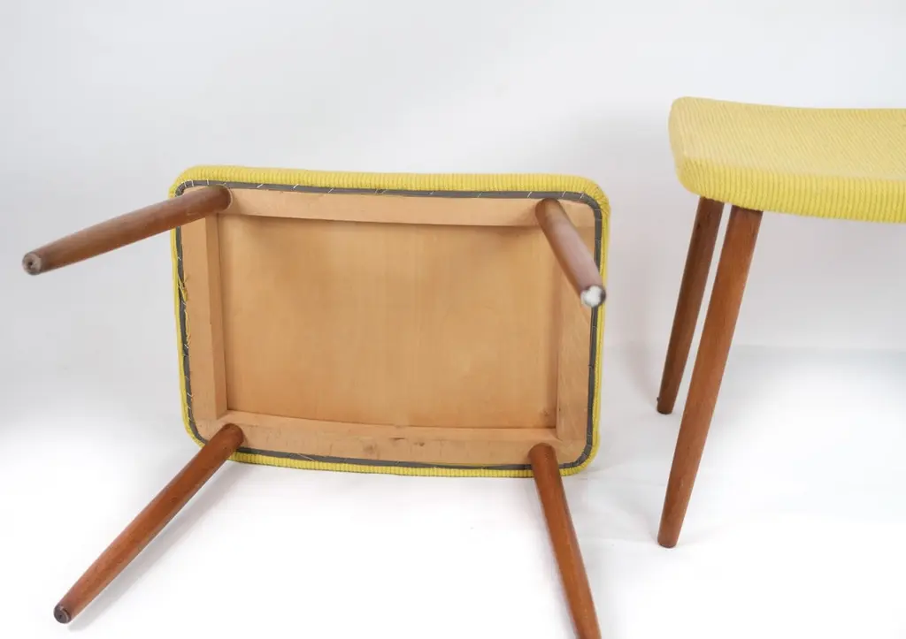 Vintage Stools With Yellow Fabric & Teak Legs From 1960s