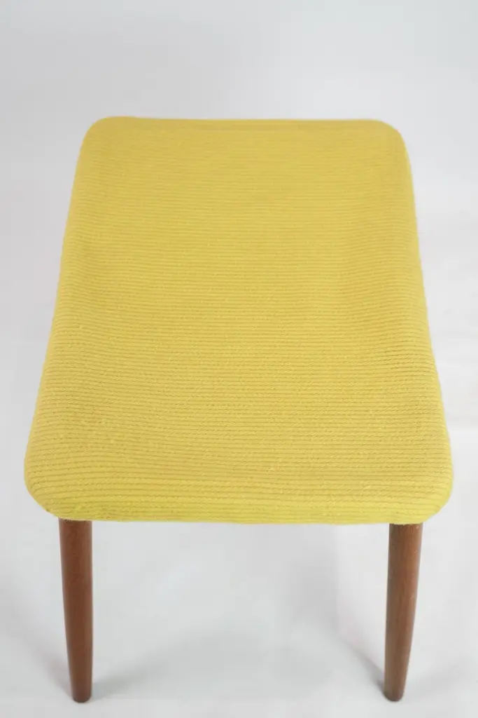 This vintage stool exudes the quintessential charm of Danish design from the 1960s, showcasing a delightful combination of style and functionality. Adorned with vibrant yellow fabric upholstery and complemented by elegant teak legs, this stool adds a touch of retro flair to any interior space.The bright yellow fabric upholstery not only adds a pop of color but also infuses the stool with a sense of playfulness and warmth. Its cheerful hue instantly uplifts the ambiance of any room, making it an inviting and eye-catching accent piece.Constructed with teak legs, this stool boasts both durability and visual appeal. The rich, warm tones of the teak wood enhance the stool's vintage aesthetic, while its sleek and slender profile adds a touch of sophistication to its overall design.Designed with comfort in mind, this stool offers a cozy seating option for relaxation or casual gatherings. Whether used as additional seating in a living room, bedroom, or entryway, it provides a stylish and versatile solution for various seating needs.Despite its vintage status, this stool remains in remarkably nice condition, showcasing the enduring quality and craftsmanship synonymous with Danish design. Its well-preserved appearance speaks to its timeless appeal and adds to its nostalgic charm.