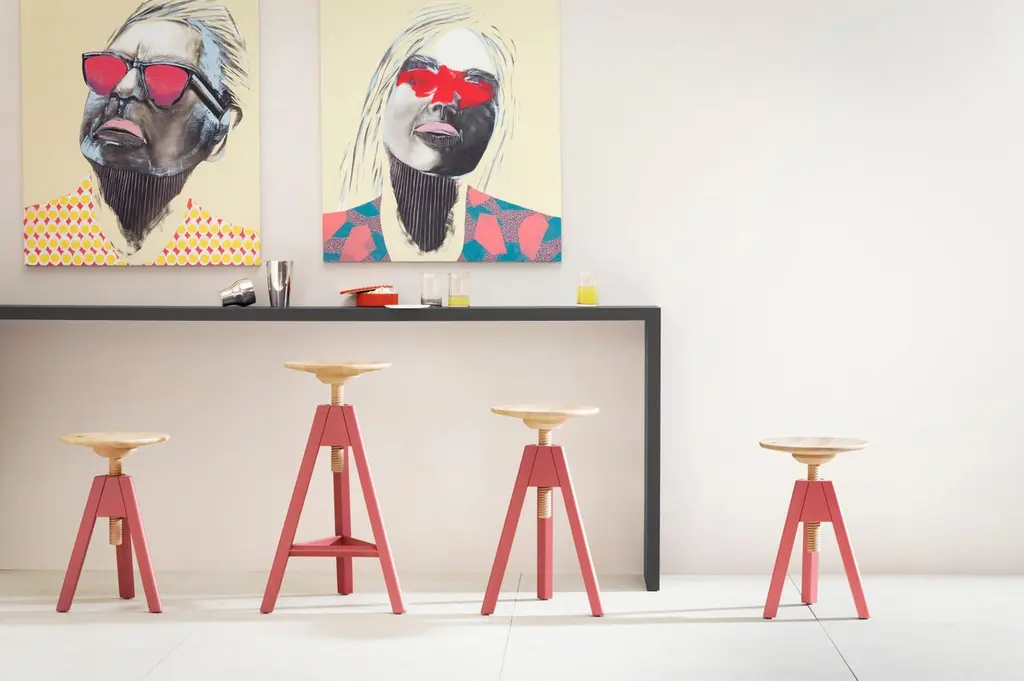 Vitos uses colour to refresh spaces and wood to clear away the excess. The form is playful and iconic, easily standing out in the market. Available in low, medium and tall.Additional Information:Material: WoodFinish: Beech Seat, Lacquer LegsDimensions: 43 W x 43 D x 85 H cmAvailable in other seat options: Lacquered anthracite, lacquered apricot, lacquered black, lacquered canapa, lacquered dusty gray, lacquered intense blue, lacquered juta, lacquered silk gray, lacquered veronese green, lacquered visone, lacquered whiteAvailable in other size options: Low and medium