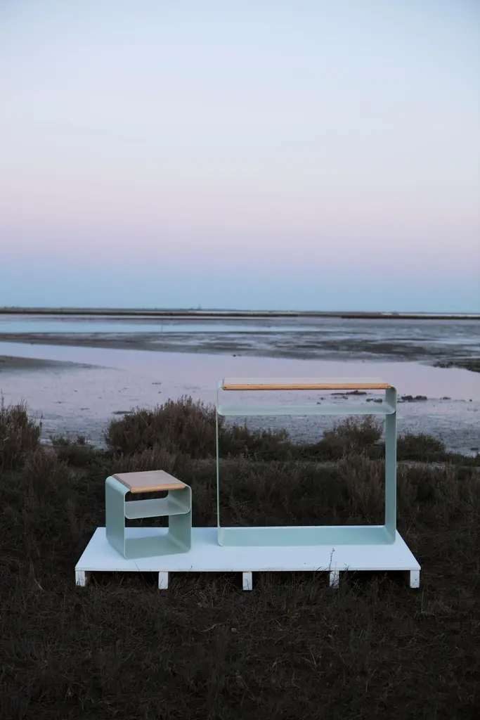 Vodo is a collection made up of folded sheet metal structures and solid woodshelves fixed by a joint. Whether it is our bench, stool, console or bookcase,Vodo will be perfect for any environment thanks to its clean line and lightness.Vodo is a line of furniture redefining internal landscapes. Objects made of bentsheets of metal, recalling voids like windows opened towards inhabited spaces,sculptures that become a bench, a bookcase, a bedside table or a consolle.Elementary forms inspired by architectural shapes.Designed by Accardi Buccheri for Medulum.Vodo, una linea di arredi che ridefinisce i paesaggi interni. Lastre di metallopiegate, vuoti che creano finestre sugli spazi abitativi, sculture che diventanopanca, libreria, comodino e consolle. Forme essenziali prestate dall’architettura.