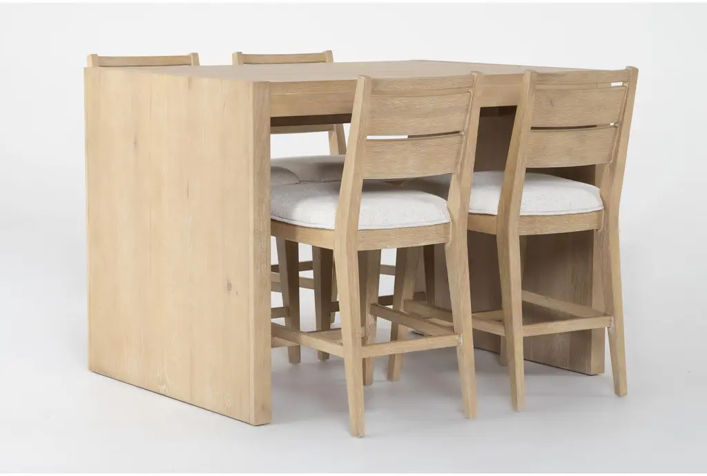 Voyage Natural 50" Counter Height Table Kitchen Island With Cream Upholstered Counter Height Stool Set For 4 By Nate Berkus + Jeremiah Brent