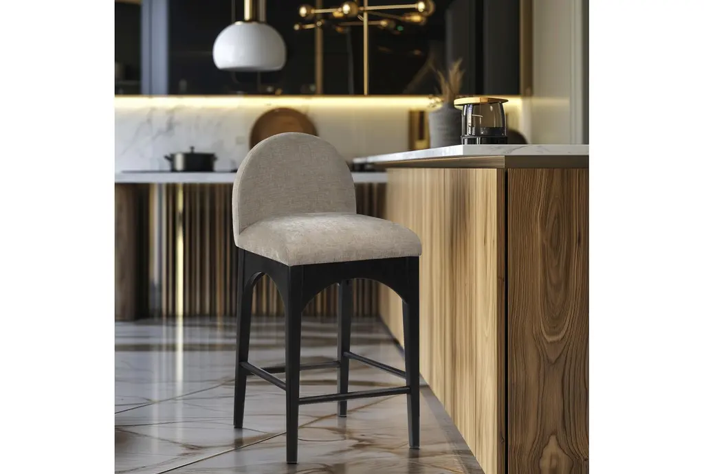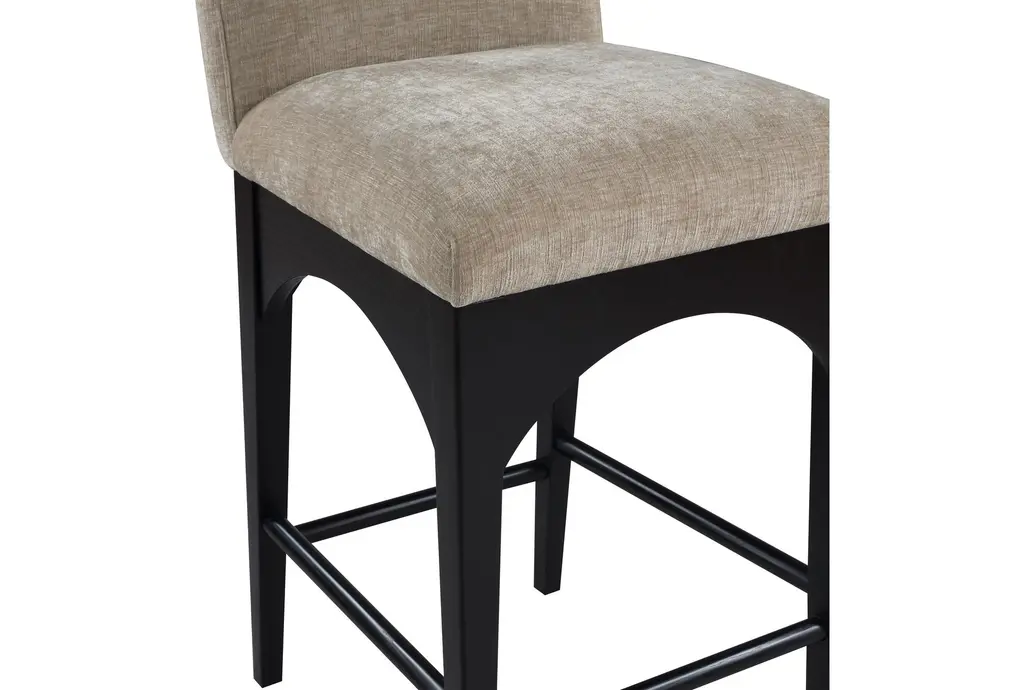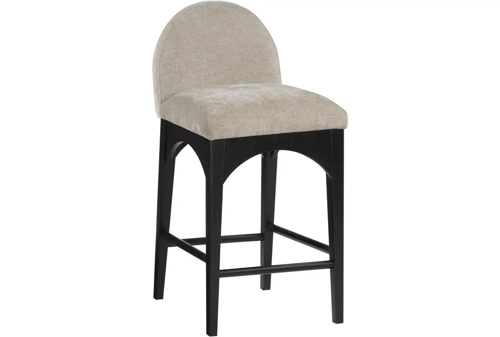 Experience the perfect blend of comfort and style with the Waldorf Beige Chenille Fabric Upholstered Counter Height Stool With Black Finish. This modern stool features a soft and durable chenille fabric that provides a plush seating experience. The sturdy ash wood legs, combined with a sleek black finish, offer both stability and a contemporary aesthetic.