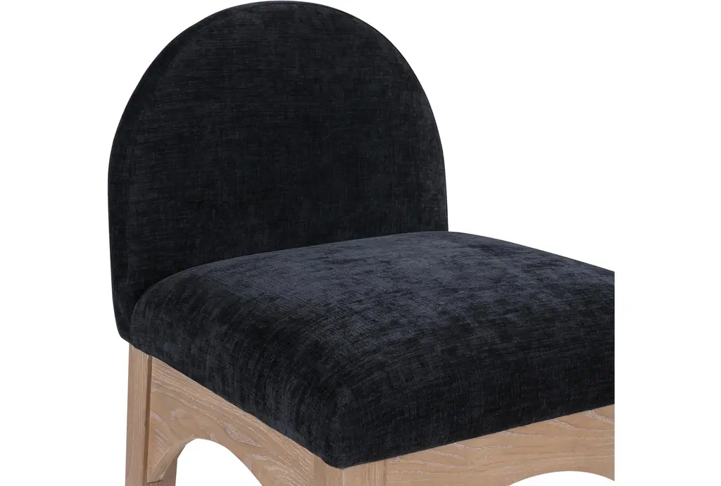 The Waldorf Black Chenille Fabric Upholstered Counter Height Stool with Natural Finish brings a modern touch to your dining room or kitchen area. The black chenille fabric offers a soft and plush seating experience, while the natural ash wood legs provide sturdy support. This armless stool is perfect for counter-height tables and islands, adding both comfort and style to your dining space.