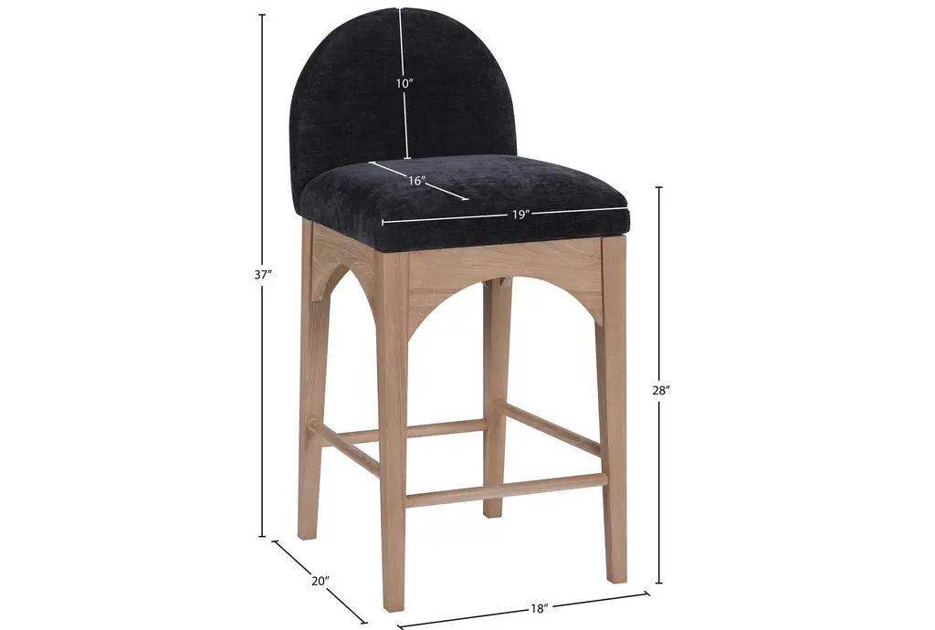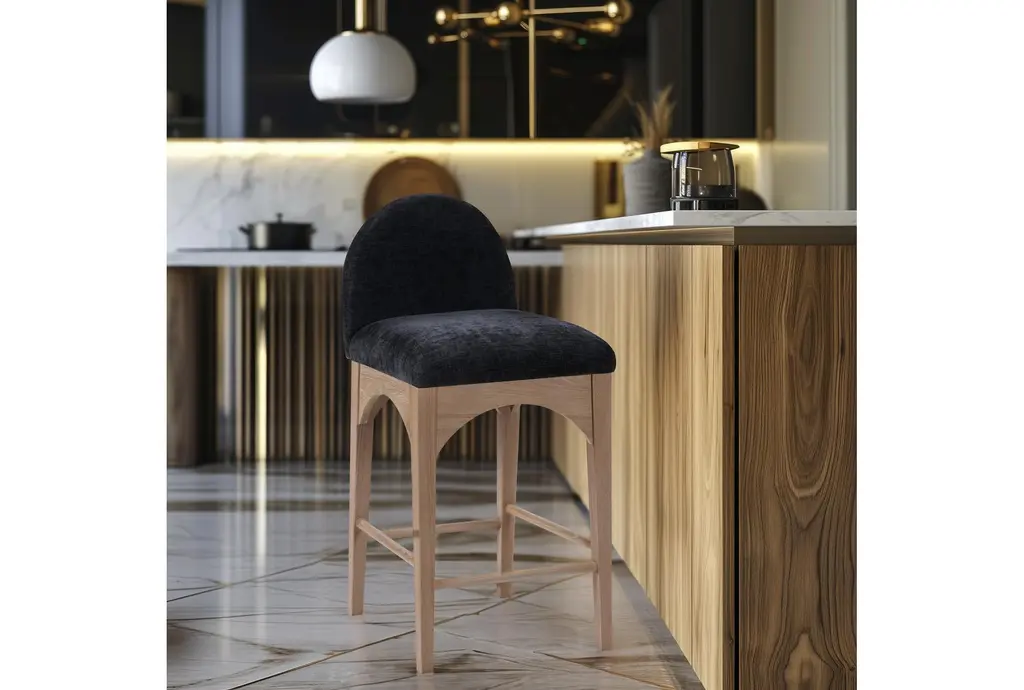 Waldorf Black Chenille Fabric Upholstered Counter Height Stool With Natural Finish