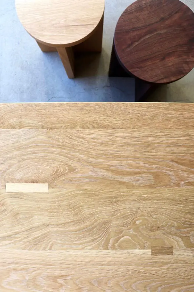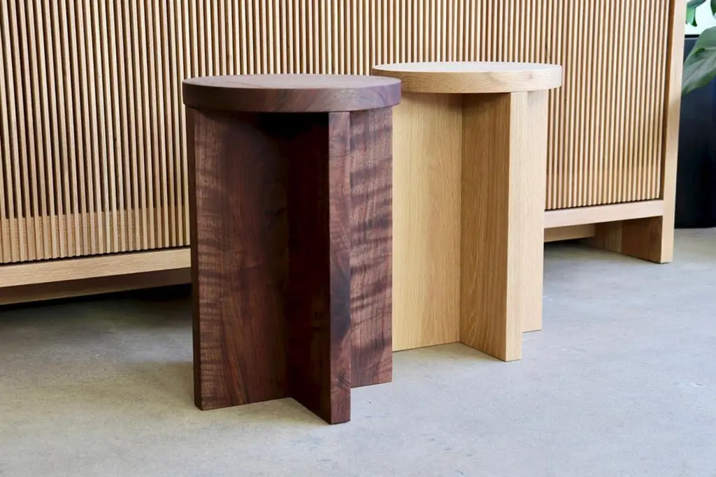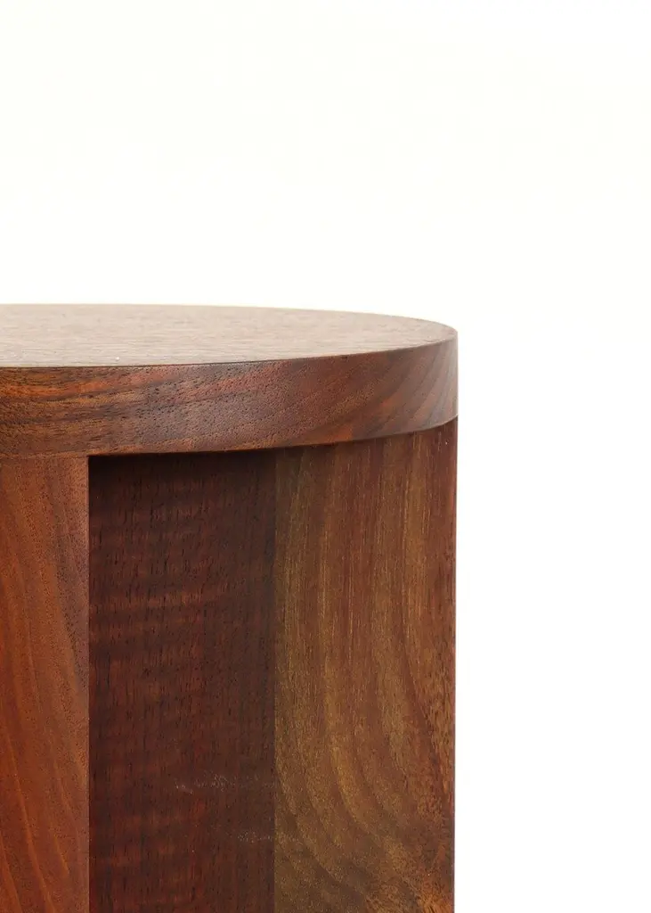 Solid wood stool / side table in stunning hand oiled Oregon Black Walnut. With a clean and minimal design, these stools are handmade in Portland, Oregon with mortise and tenon joinery in Material's workshop. Also available with a square top, in a number of wood species.