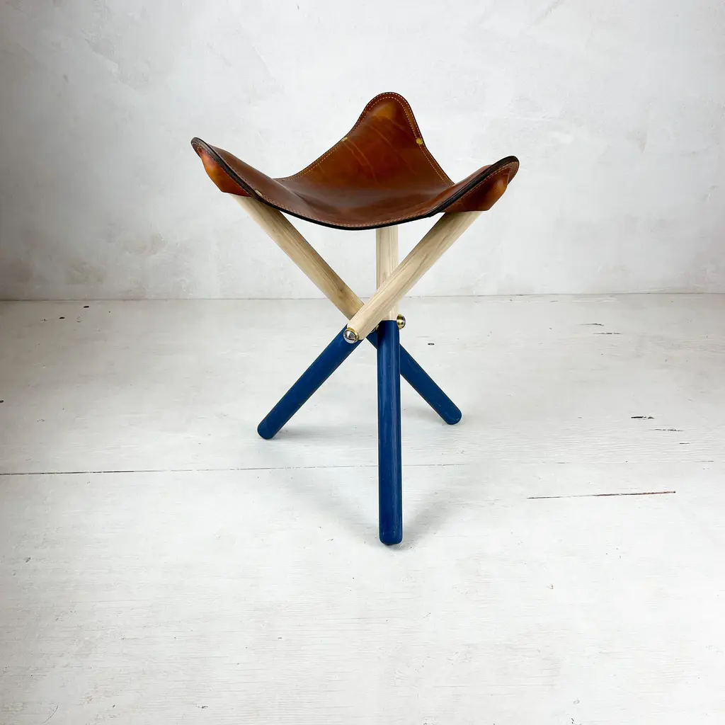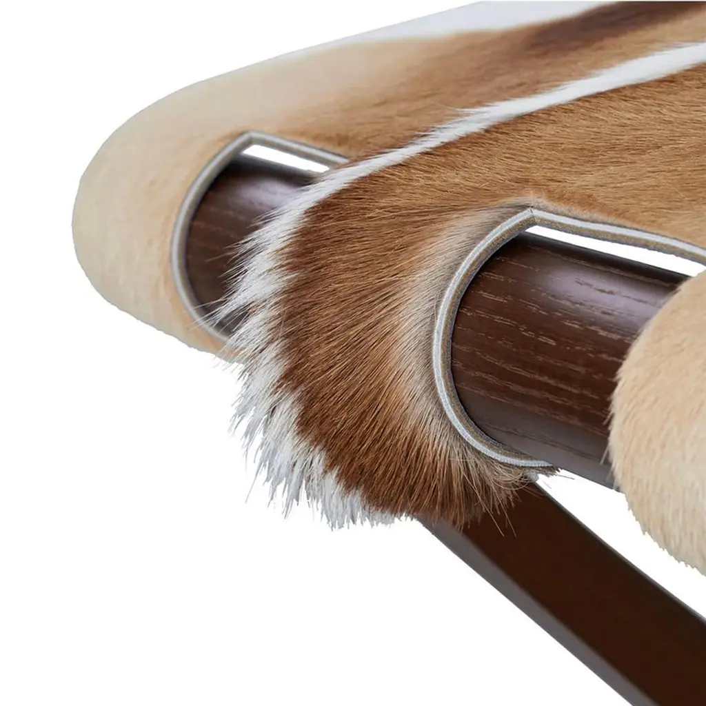 Folding stool walter springbok walnut with folding solid walnut base. With real springbok Skin seat.