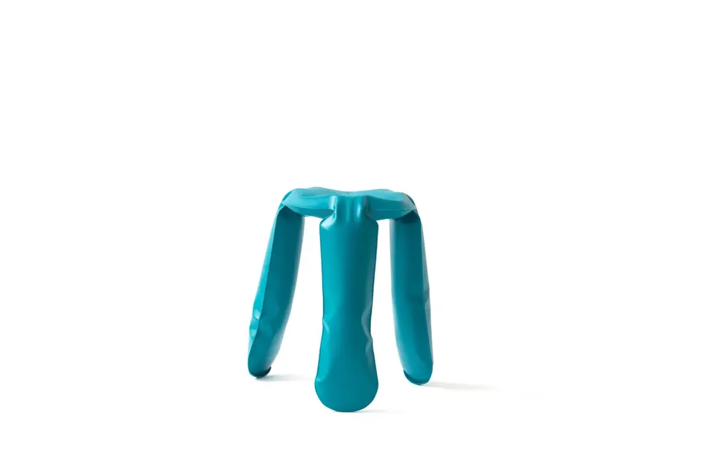 Water blue mini plopp stool by Zieta.Dimensions: D 25 x H 38 cm Material: Carbon steel. Finish: Powder-coated. Matt finish.Available in colors: strawberry red, water blue, yellow glossy, flamed gold, and deep space blue. Available in stainless steel, aluminum, and carbon steel. Also available in standard, kitchen, and bar sizes. PLOPP stool is an icon and a bestseller of Zieta Studio. It is not only ordinary seating – its intriguing form defies the rules of geometry and contains the history of Oskar Zieta’s research on the properties and possibilities of metal. PLOPP, or “Polish folk air-pumped object”, is material proof that the creative and artistic aspect of design can be included in a highly advanced engineering form.The unique, toy-looking, and playful shape of PLOPP is an effect of an innovative forming method – FIDU technology. Forms made in FIDU are very light but also very durable. Since it was introduced to the market in 2010, it had already won such prestigious awards as the Red Dot Design Award 2008, the German Design Council Award 2008 and the Forum AID Award 2009.PLOPP Standard Aluminium features stools made of lightweight, eco-friendly material and is available in several finishes.PLOPP is also available in various sizes: PLOPP Mini, PLOPP Standard, PLOPP Kitchen, and PLOPP Bar.About Zieta: Zietas main goal is to deliver uniqueness and customization in design and construction while keeping the production, transport, and warehousing innovatively efficient.This is how they imagine the future world: Light, durable structures of customized applications produced on demand out of one-of-a-kind parts, yet efficiently.They use a computer-controlled production process. Customized pattern, customized form, customized function, one-of-a-kind product, and outstanding precision are what they deliver.You will find all of this philosophy reflected in the products. The research, they discover new possibilities, they play with forms and they deliver a beautiful, innovative, surprising outcome to people who love the design and who care about design development.They believe their work is a valuable contribution to the world of design not only by the unique beauty of the forms but most of all by opening ultra-innovative opportunities of forming and new paths for the world of the future. __