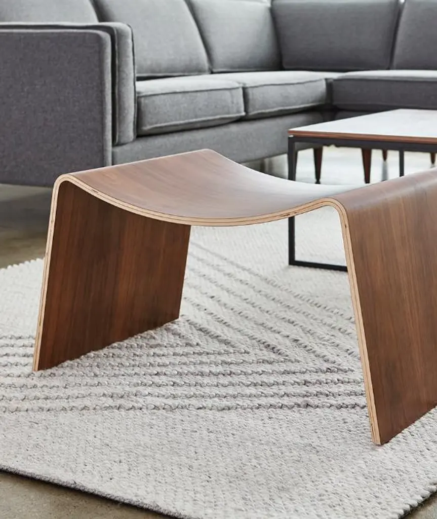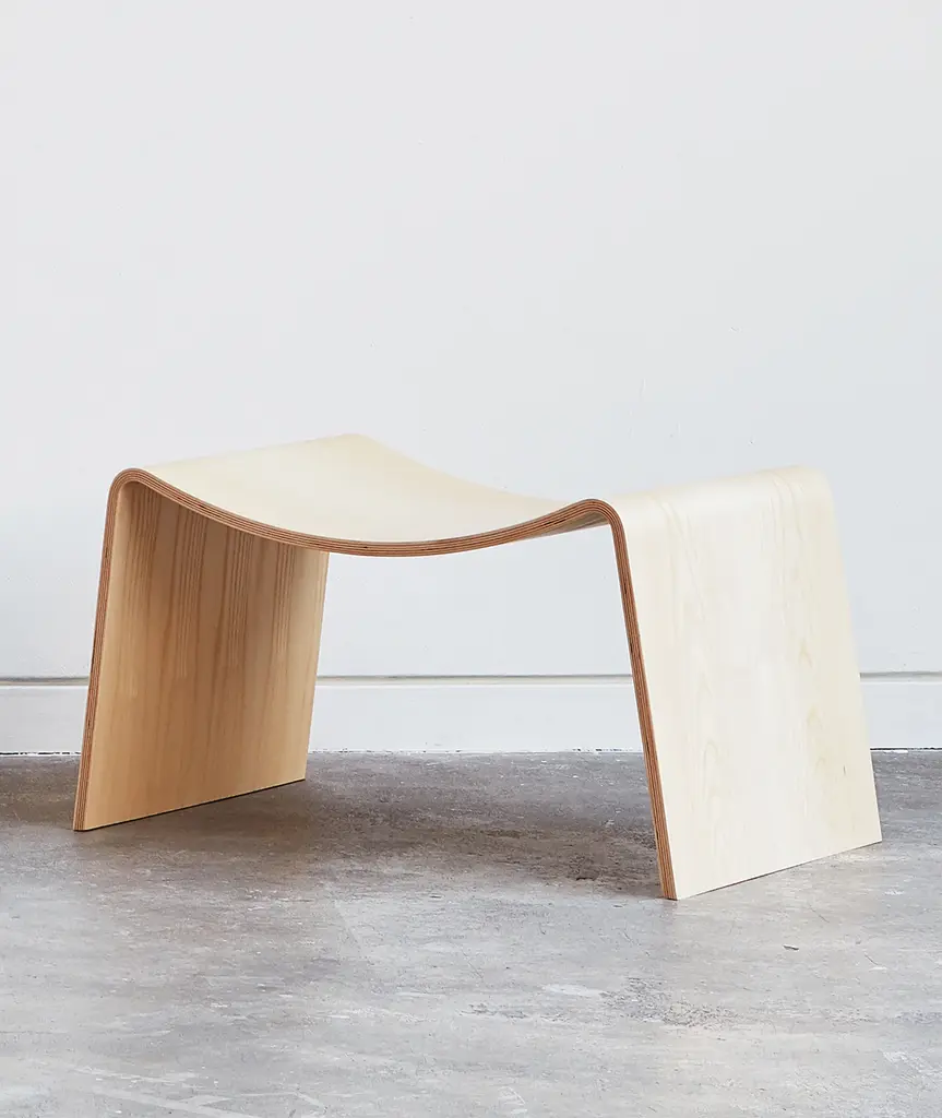 Small-scaled and extremely versatile, the Wave Stool’s smooth, flowing lines are perfect in living rooms, bedrooms or front hallways. The cut edge reveals layers of exposed-ply, and the stool’s wide curve allows for a generous and accommodating seating area.