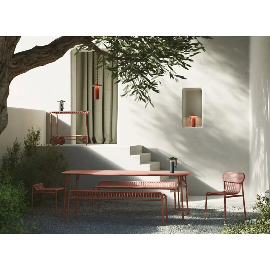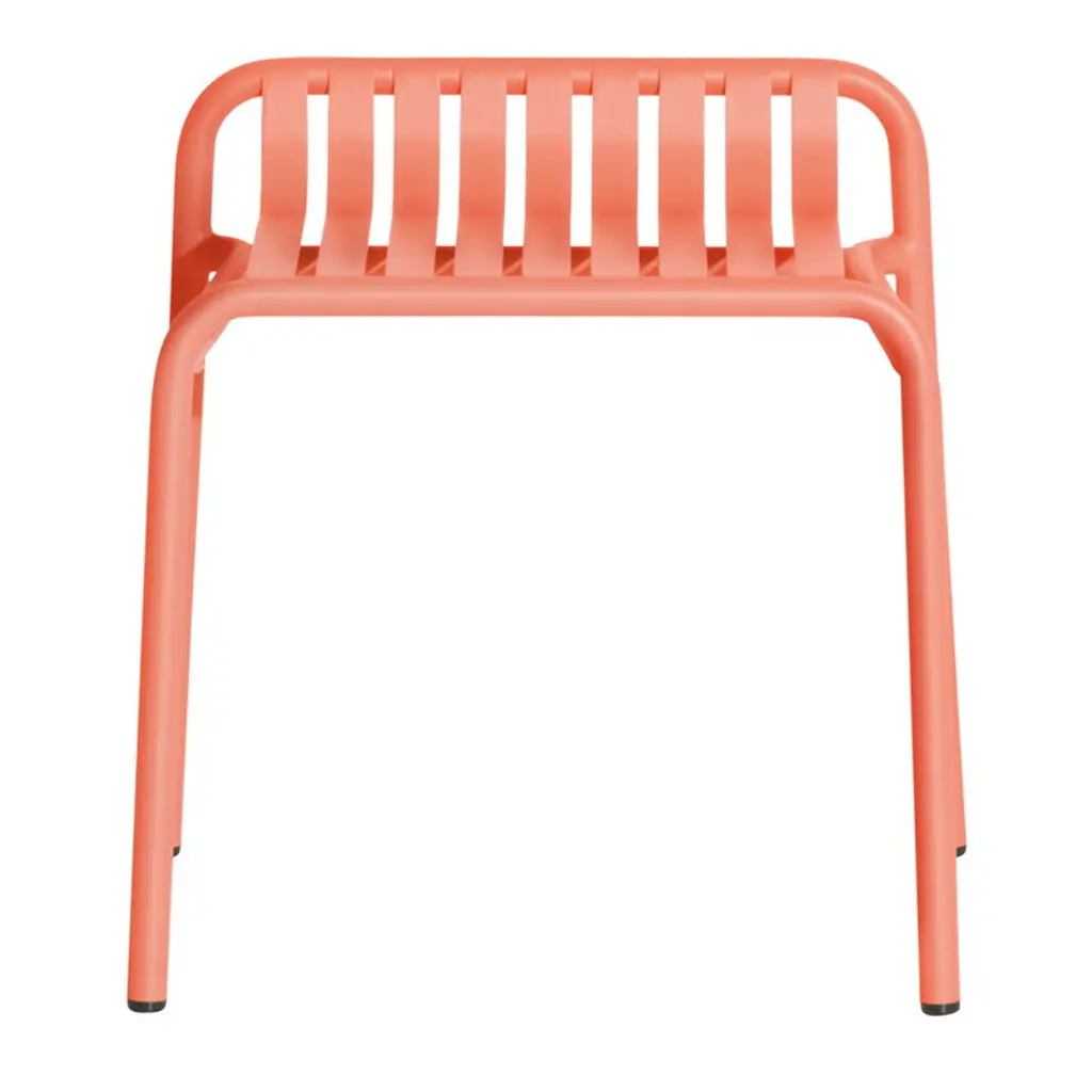 The Week-end stool is part of Petite Friture’s collection of aluminum outdoor furniture. The clean-lined outdoor stool goes beautifully together with the tables and benches of the Week-end collection, and also serves as a small side table itself, if needed. All chairs and stools in the Week-end collection are stackable. Created by the design duo BrichetZiegler, Petite Friture’s Week-end outdoor furniture combines different geometrical shapes with functional, contemporary design. The aluminum structure makes the pieces lightweight and hardwearing at the same time, and the epoxy-coated matt surface can easily stand any weather. The Week-end range consists of chairs, benches and tables in many colors and sizes, and is thus suitable for large gardens and small balconies alike. Thanks to the sleek design, the pieces can also be used indoors.