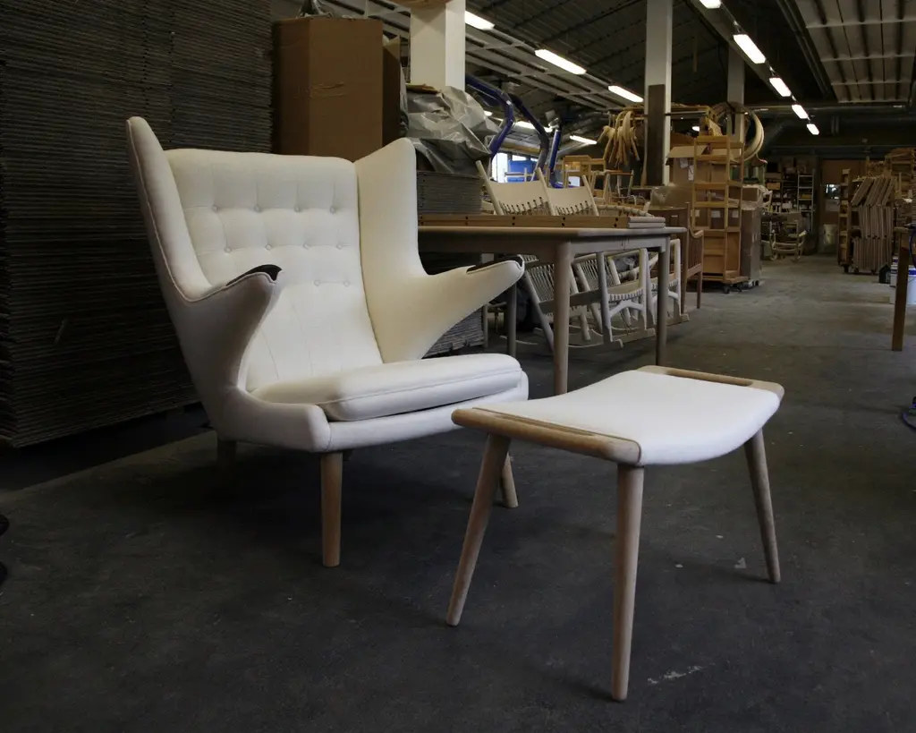 Wegner designed this stool as an accessory to the pp19 Teddy Bear Chair. But despite this specific match, it naturally accompanies most other easy chairs in PP Møbler's product line. Wegner clearly demonstrated this himself at several occasions presenting the stool along with many other easy chairs. In this way, the stool exemplifies a similar kind of universal design as the pp35 Tray Table. The stool is a strong construction with legs that penetrate and interlock with the solid beech wood frame using traditional joinery, and the upholstery is made of horsehair and cotton. It may seem as a trivial product, but it is a genuine piece of exquisite crafts. This product is available with additional customization options. Please contact us for more information or to order. NOTE: This item is made to order by some of the world's best furniture craftsmen using materials that are required to meet PP Mobler's exacting specifications. As such, lead times can vary and are subject to change.