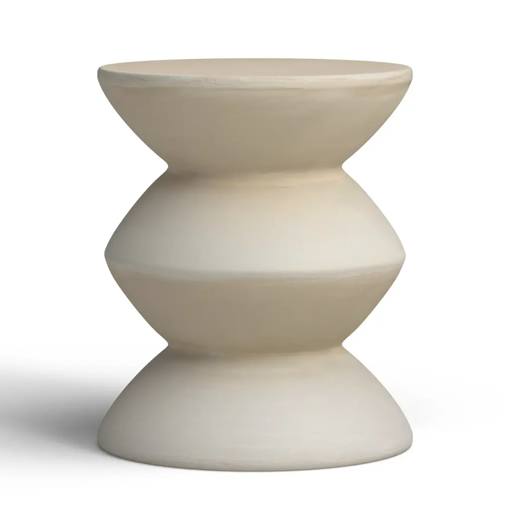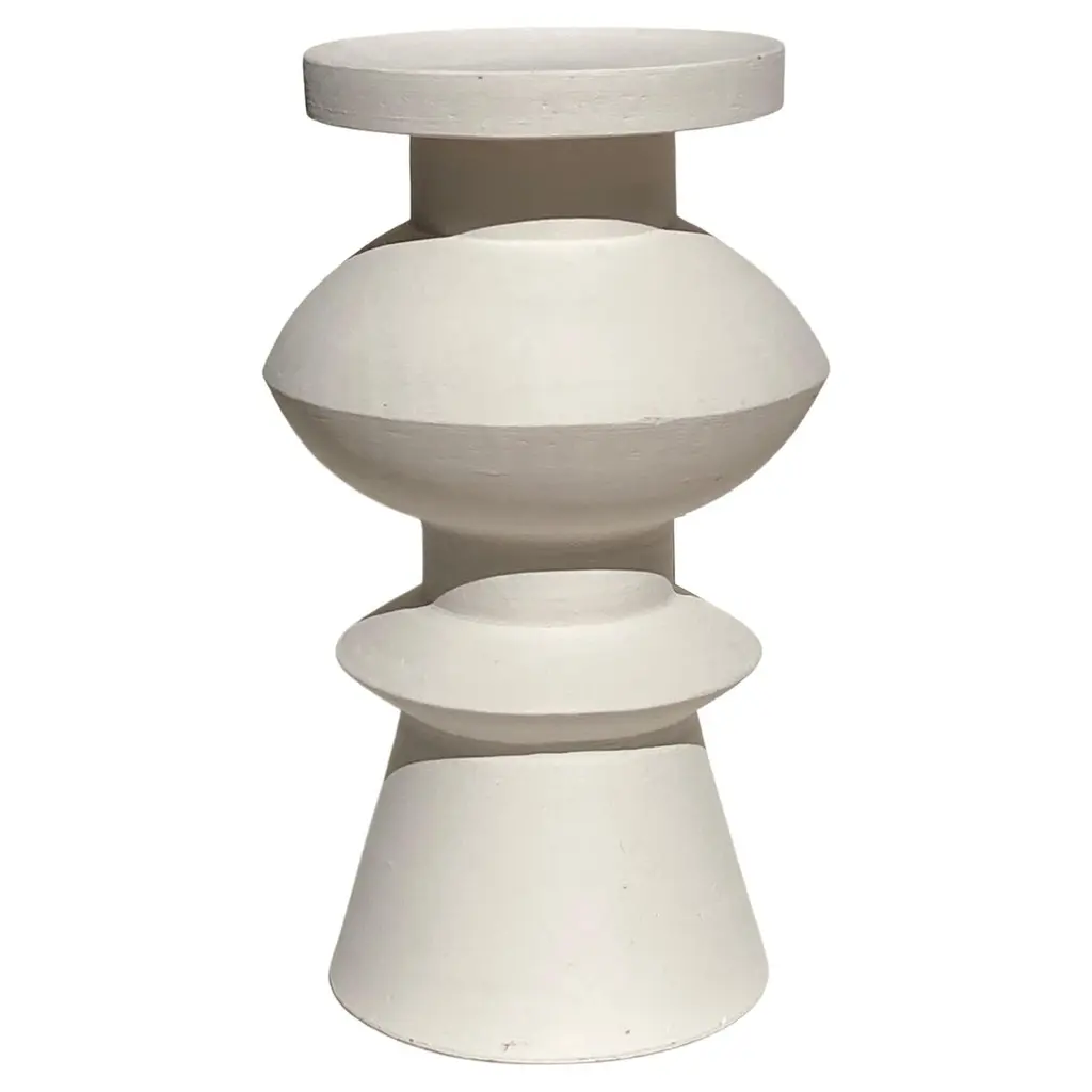 White 1 union stool by Lea GinacUnique piece. Dimensions: diameter 23 x height 47 cm Materials: Chamotte clay. Handmade ceramic. Technique: Hand-modeling.Available in two other designs. Also available in terracotta.This stool is designed in the same spirit as the Union stool. The choice of material makes this room warm thanks to the earth. In addition, its size allows it to adapt to several spaces: near a bed, a sofa, or simply as a storage surface.Daughter of antiques and passionate about design, Léa Ginac decided to launch her own brand with a strong bias: to mix the old and the contemporary through timeless pieces with sculptural dimensions. In her creative process, her inspiration comes mainly from the universe in which she grew up, objects, and ancient art. The Union stool comes in 3 different shapes and 4 colors. Handmade in chamotte clay in Italy.Lea Ginac is the daughter of two antique dealers with a passion for interior design, Léa built her personal brand with a clear vision in mind: blending ancient and contemporary aesthetics through timeless pieces with sculptural dimensions. A versatile artist, she’s designed a line of both street and home furniture, along with various decorative objects, light fixtures, and even dinnerware, all handcrafted in France and Italy. Nurtured by antiquity and design, LEA GINAC offers a range of furniture, objects, and lights combining old and modern to suit all sorts of interior designing. She uses marble and slate as noble, historical, and timeless materials. Symmetry, luminosity, and curves are the key impulses of her creativity. Off the wall and poetical, LEA GINAC invites the audience to enter her artistic world filled with history and emotions.