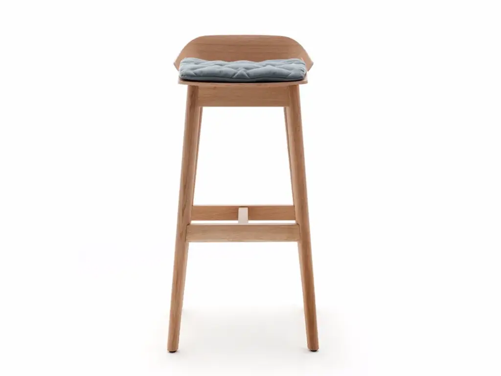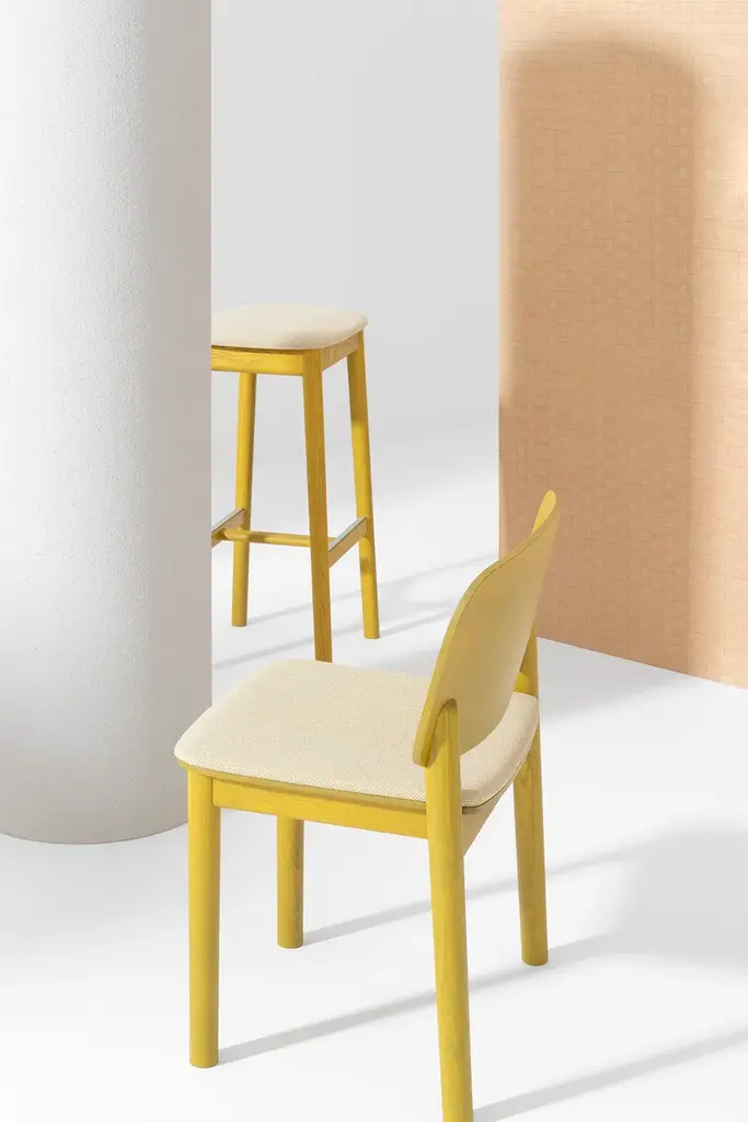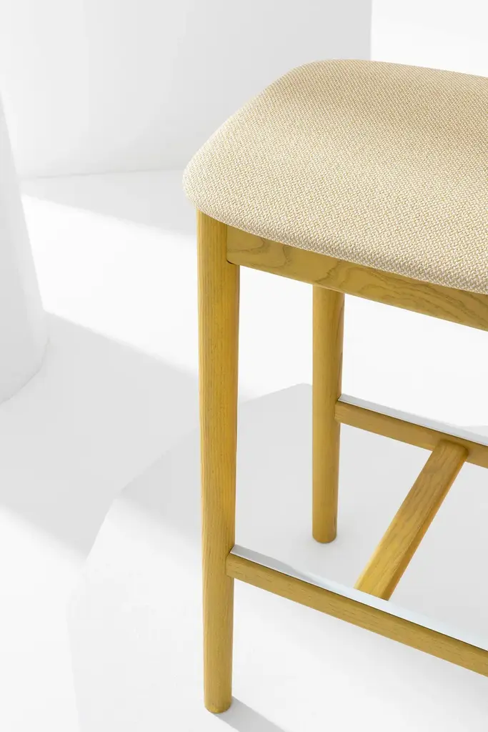 White 135 is a high stool with a footrest, featuring an ash wood frame and an upholstered seat.White is a collection inspired by the Nordic design of the 1960s. The White chair, heir to Billiani’s Green chair, also resembles it in name.Both feature generous forms and legs four centimeters thick, but White is even more robust: a chair with a reassuring presence, ideal for any setting where solidity and comfort are essential.