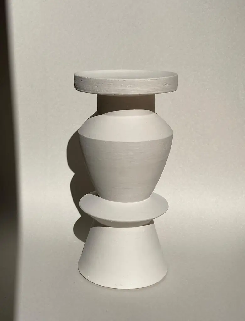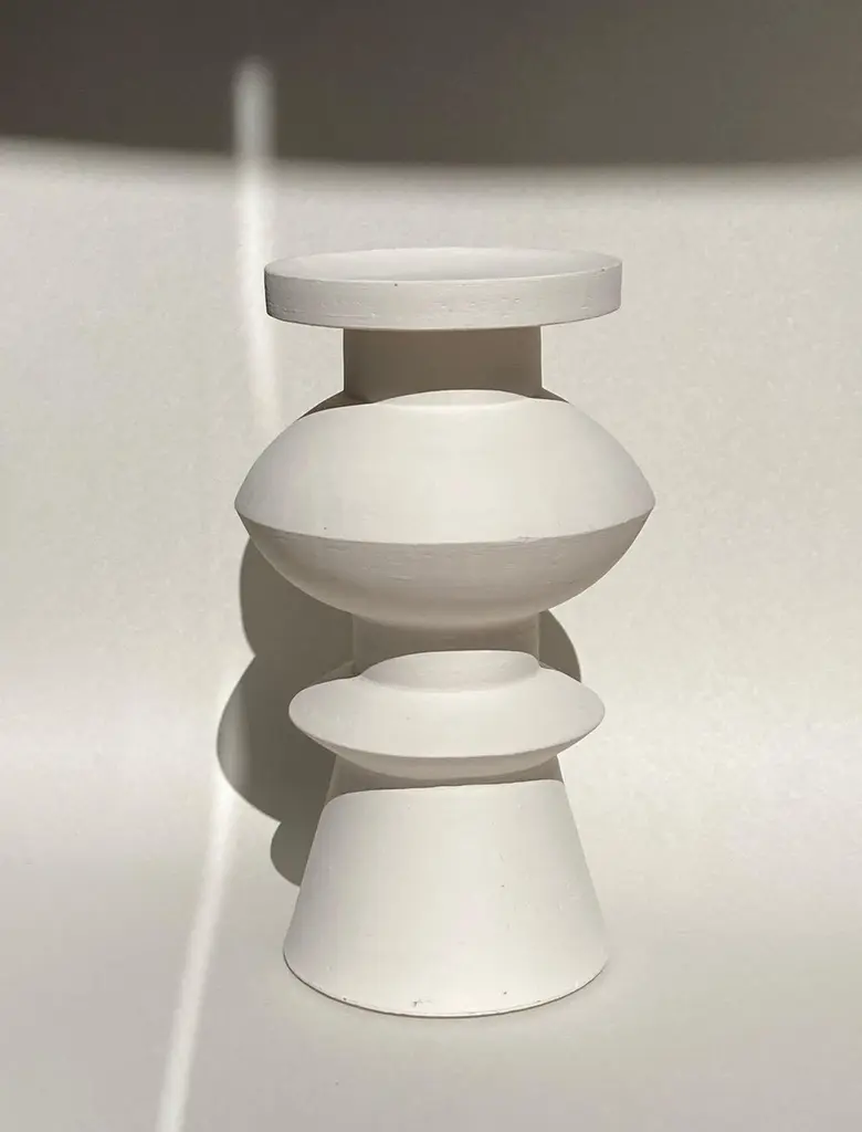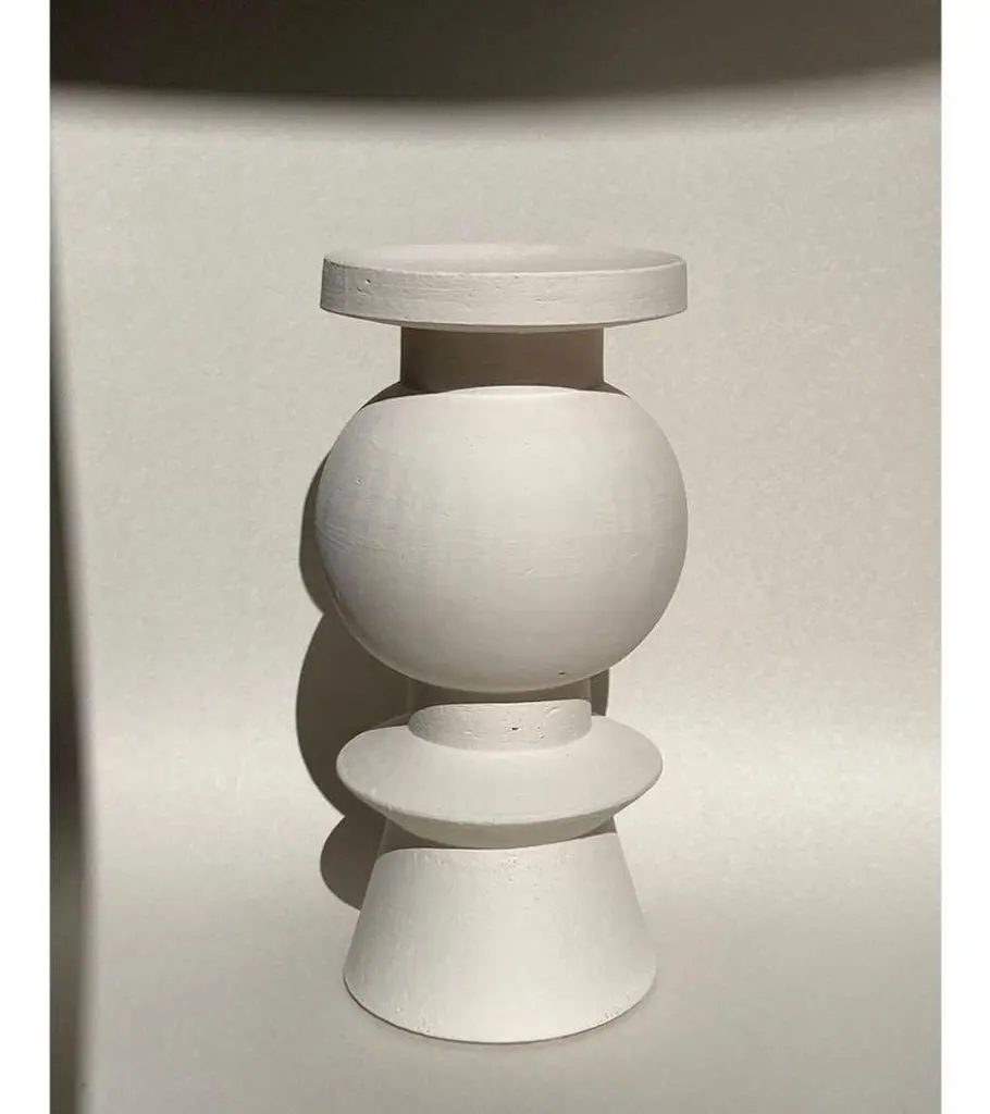 White 2 union stool by Lea GinacUnique Piece. Dimensions: Diameter 23 x Height 47 cm Materials: Chamotte clay. Handmade Ceramic. Technique: Hand-modeling.Available in two other designs. Also available in Terracotta.This stool is designed in the same spirit as the Union stool. The choice of material makes this room warm thanks to the earth. In addition, its size allows it to adapt to several spaces: near a bed, a sofa, or simply as a storage surface.Daughter of antiques and passionate about design, Léa Ginac decided to launch her own brand with a strong bias: to mix the old and the contemporary through timeless pieces with sculptural dimensions. In her creative process, her inspiration comes mainly from the universe in which she grew up, objects, and ancient art. The Union stool comes in 3 different shapes and 4 colors. Handmade in chamotte clay in Italy.Lea Ginac is the daughter of two antique dealers with a passion for interior design, Léa built her personal brand with a clear vision in mind: blending ancient and contemporary aesthetics through timeless pieces with sculptural dimensions. A versatile artist, she’s designed a line of both street and home furniture, along with various decorative objects, light fixtures, and even dinnerware, all handcrafted in France and Italy. Nurtured by antiquity and design, LEA GINAC offers a range of furniture, objects, and lights combining old and modern to suit all sorts of interior designing. She uses marble and slate as noble, historical, and timeless materials. Symmetry, luminosity, and curves are the key impulses of her creativity. Off the wall and poetical, LEA GINAC invites the audience to enter her artistic world filled with history and emotions.