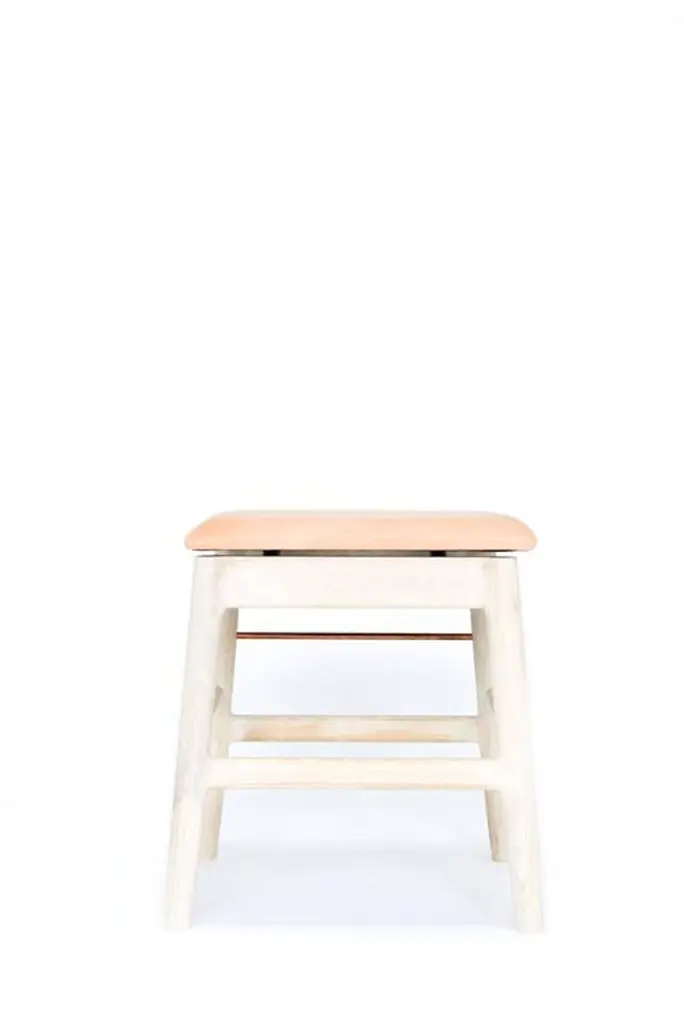 Handcrafted solid wood construction, featuring true copper or brass rods. Made in Los Angeles, California. Shown in white bleached oak, copper and veg tan upholstery. Wood type is available in ebonized oak, white oak, solid walnut, maple, ash and any American wood species. Metal rod is available in brass, copper or aluminum. In-house leather upholstery comes in black, olive, camel and veg tan. COM and COL is also available.Inquire for in-house swatch or custom upholstery.