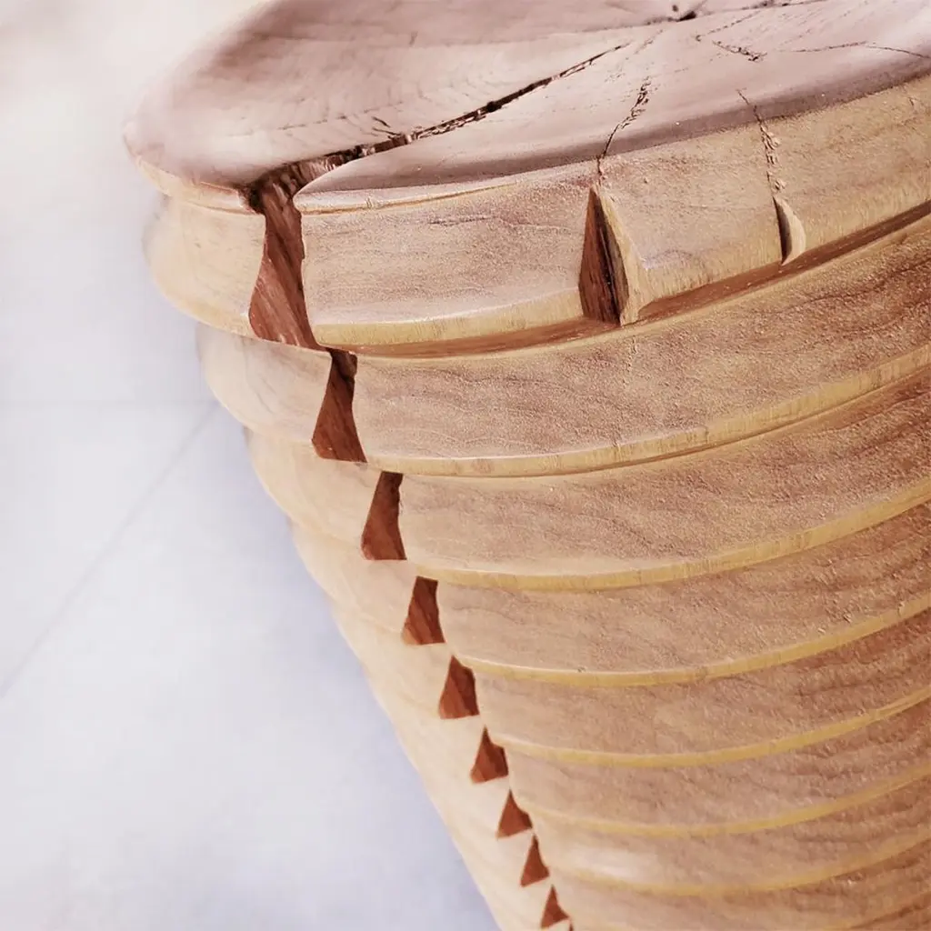 Stool Whorl Cedar High made in natural solid cedar wood. Treated with wax with natural pine extracts. Solid cedar wood include movement, cracks and changes in wood conditions, this is the essential characteristic of natural solid cedar wood due to natural settlement and different environmental conditions.