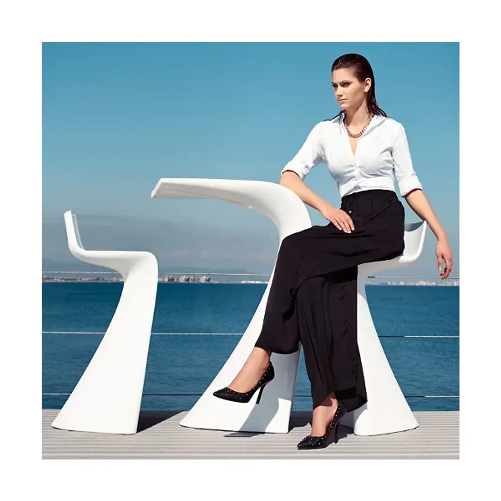 The Wing High Stool features straight lines and calculating curves that artistically mimic the aerodynamics of flight. Slender enough for small spaces, this sculptural piece will enhance the ambiance of any modern dining area by providing stylish and comfortable seating. Beyond aesthetics, the furniture is made of polyethylene resin, a hard-wearing and weatherproof material. What's more, the nonslip adjustable feet provide extra support and stability, creating peace of mind during wet conditions. So feel free to place the Wing High Stool in the garden, or practically anywhere under the sky. Add a splash of color with a selection of eye-catching shades in matte or glossy finish.