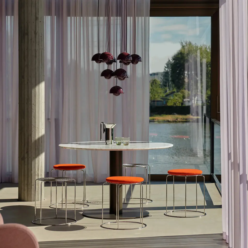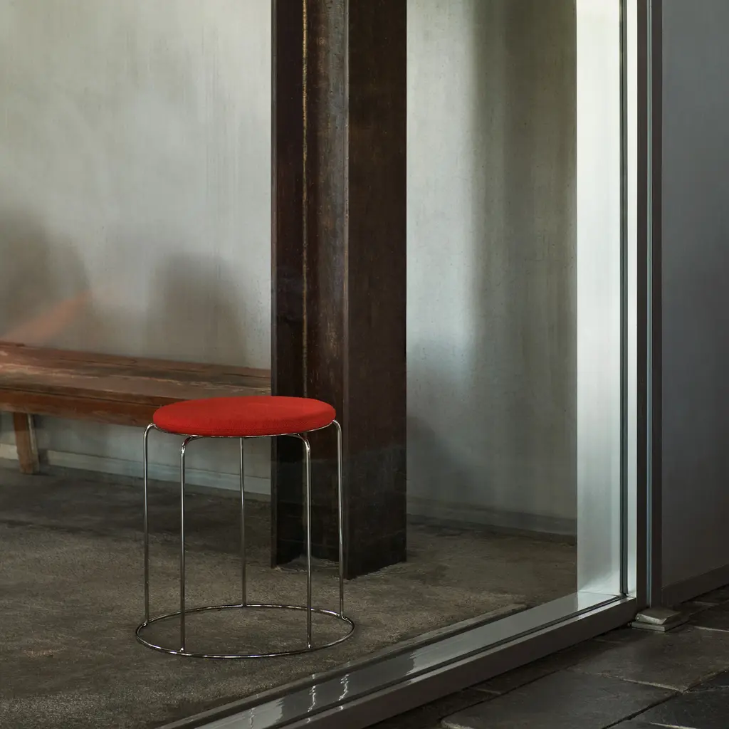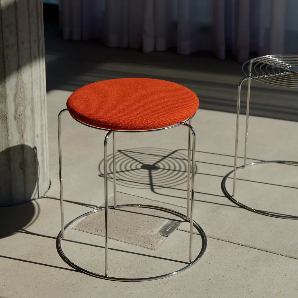 The Wire Stool VP11 by &Tradition features a robust stainless steel structure, combining durability with a sleek, minimalist design. Designed by Verner Panton, this stool is known for its geometric wire frame that offers both stability and visual appeal. Its design makes it highly practical for various spaces, from homes to commercial settings. The stool also includes an optional padded seat for added comfort, available in a range of high-quality materials.