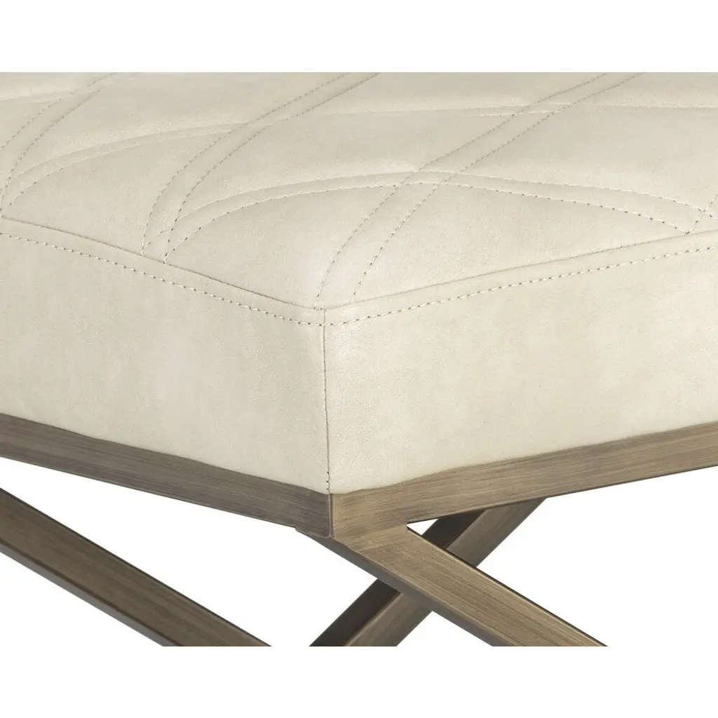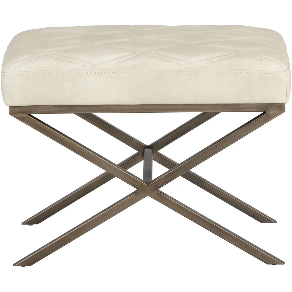 This handsome stool combines Old English flair with mid-century style. Features a double-stitched diamond pattern on the seat with an antique brass steel x-base. Stocked in our bravo cream, havana dark brown and tobacco tan faux leather. Handle With Care: This design has been crafted with faux leather. Faux leather is manufactured to reflect the natural characteristics of leather as such, colour variations, markings, wrinkles, grooves, and light scratches are appreciated characteristics. No two pieces will be alike. Visit our Product Care page for more information on how to ensure the lasting beauty of this piece.
