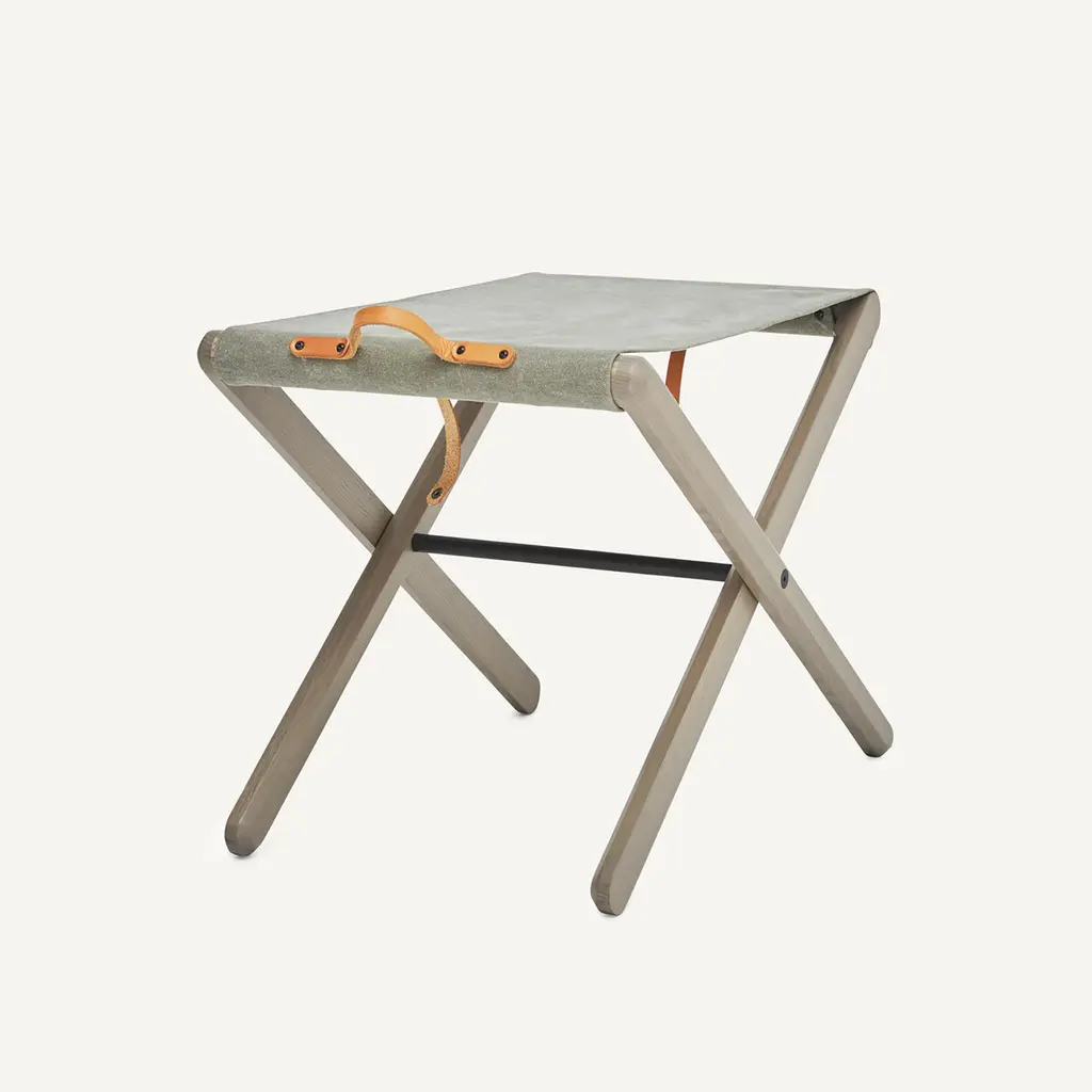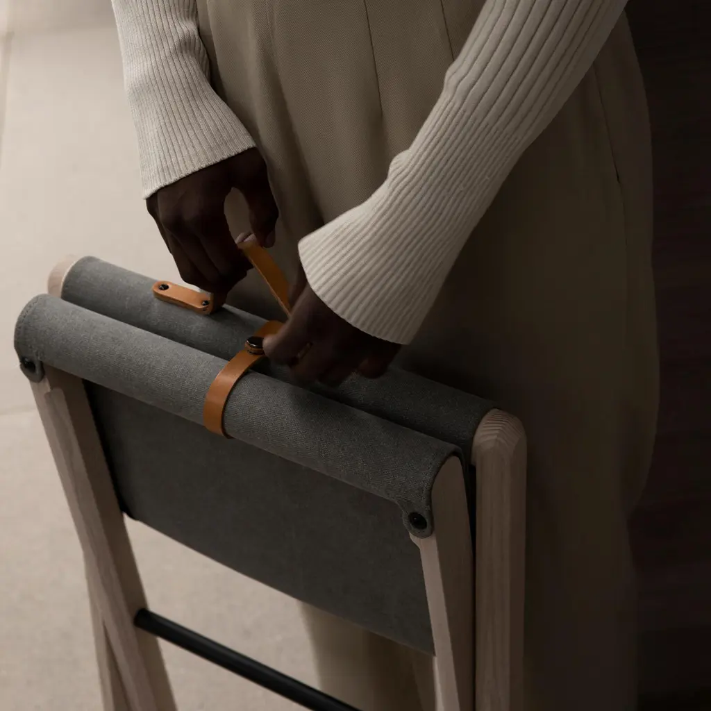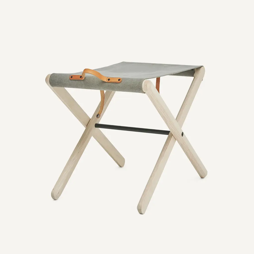 Compact, versatile, and comfortable. This wood and canvas folding stool provides the perfect solution to sit in complete comfort anywhere. Featuring campaign furniture design cues, the Departo Folding Stool becomes a contemporary classic in any indoor or outdoor living space. Apart from its good looks and convenient design, the stool is also skillfully handmade from quality materials. It features a steel frame, a backrest and legs made of solid ash wood, and a soft canvas seat. A leather handle provides a handy way to carry the stool when needed, whether you want to take it out to a terrace or back to storage. Available in Light Ash and Dark Ash versions.