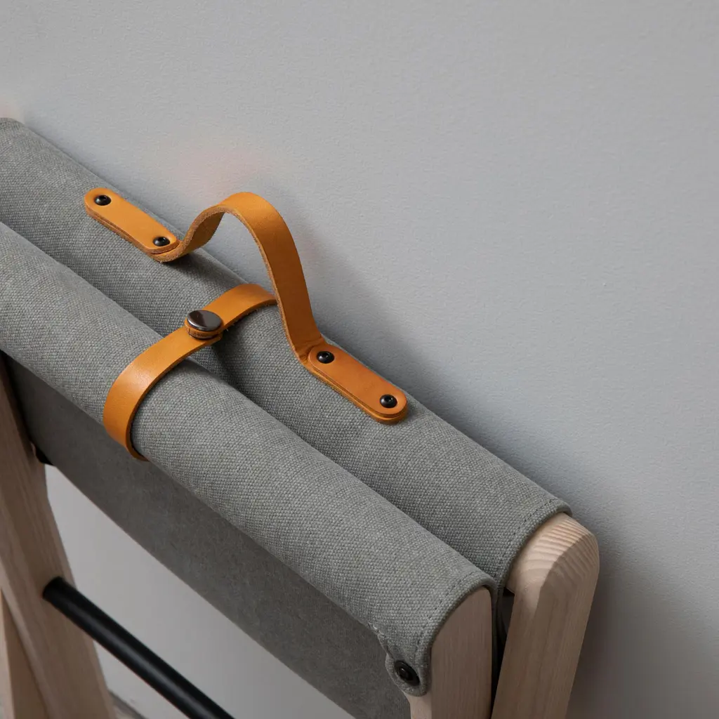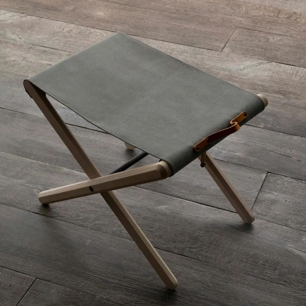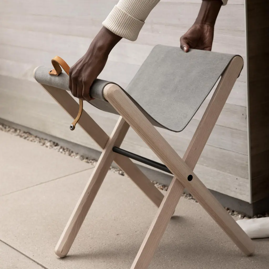 Compact, versatile, and comfortable. This wood and canvas folding stool provides the perfect solution to sit in complete comfort anywhere. Featuring campaign furniture design cues, the Departo Folding Stool becomes a contemporary classic in any indoor or outdoor living space. Apart from its good looks and convenient design, the stool is also skillfully handmade from quality materials. It features a steel frame, a backrest and legs made of solid ash wood, and a soft canvas seat. A leather handle provides a handy way to carry the stool when needed, whether you want to take it out to a terrace or back to storage. Available in Light Ash and Dark Ash versions.