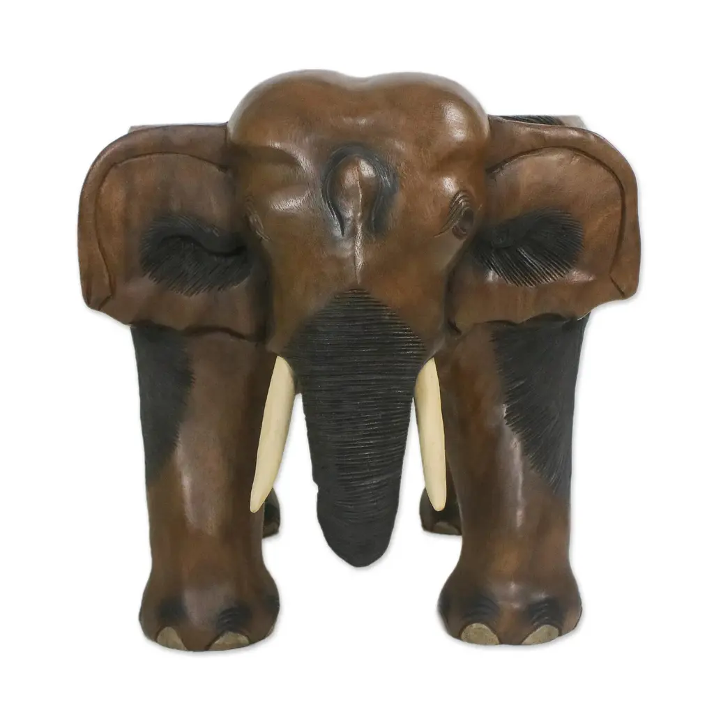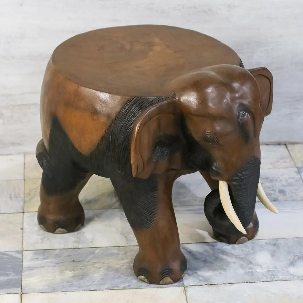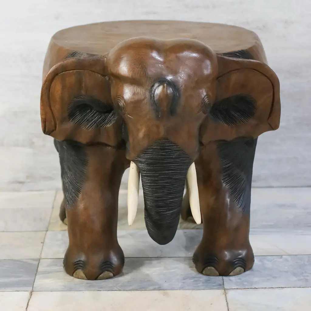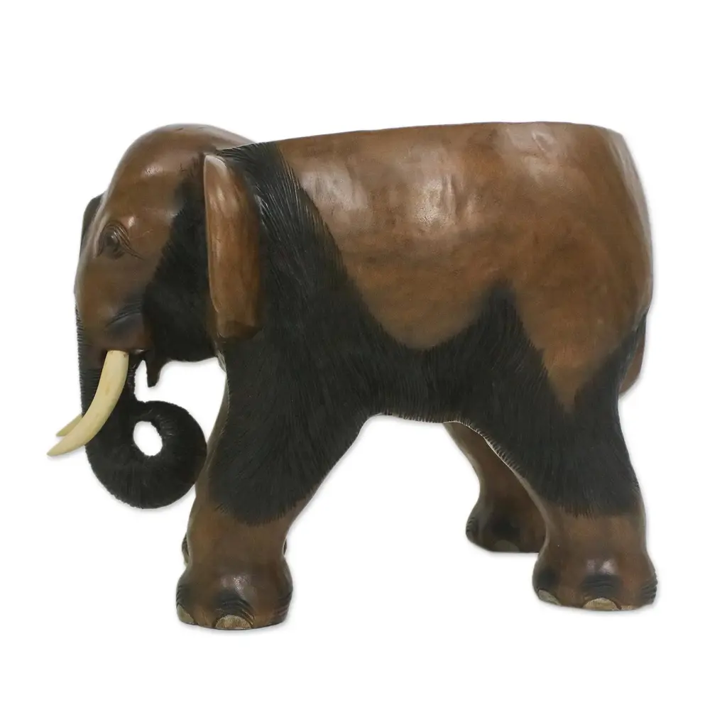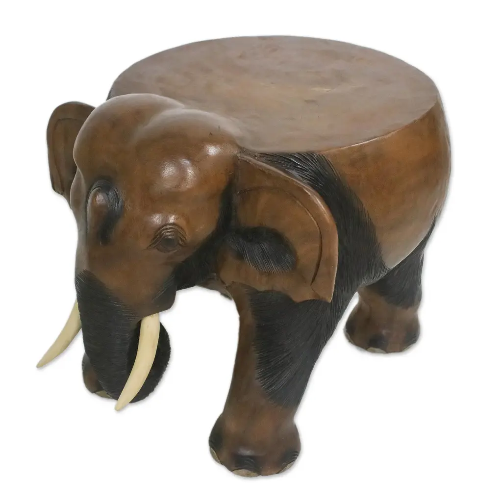 Hand-carved of raintree wood, an elephant adds charm to your home. Amporn works with local artisans, who give this delightful stool a dark brown finish. The elephant's tusks are made of ivory wood and are removable.