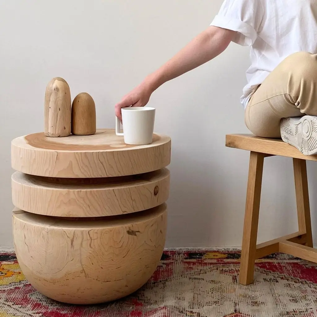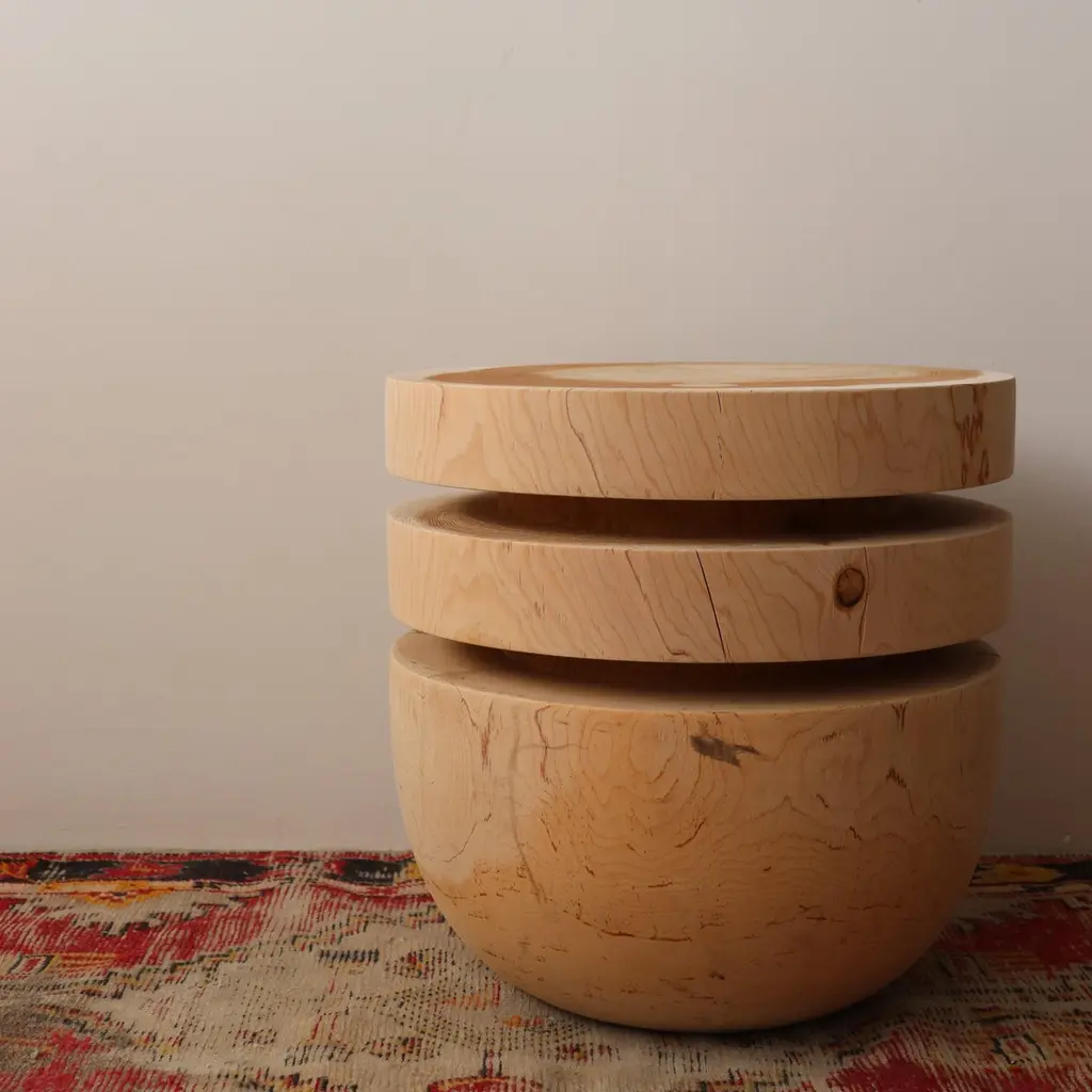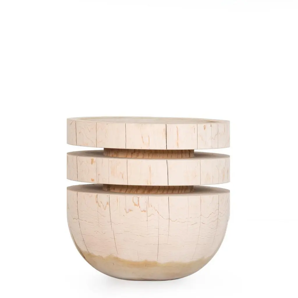 Woodturned From One Piece Of Cedar Block Bookworm Side Table / Stool
