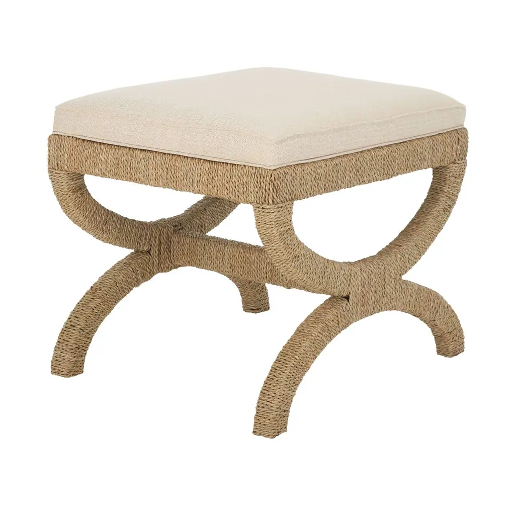 Worlds Away Xanadu Coastal Beach White Upholstered Seat Natural Rope Stool
