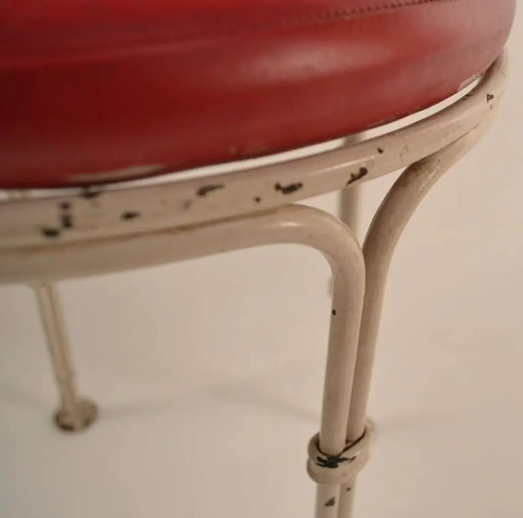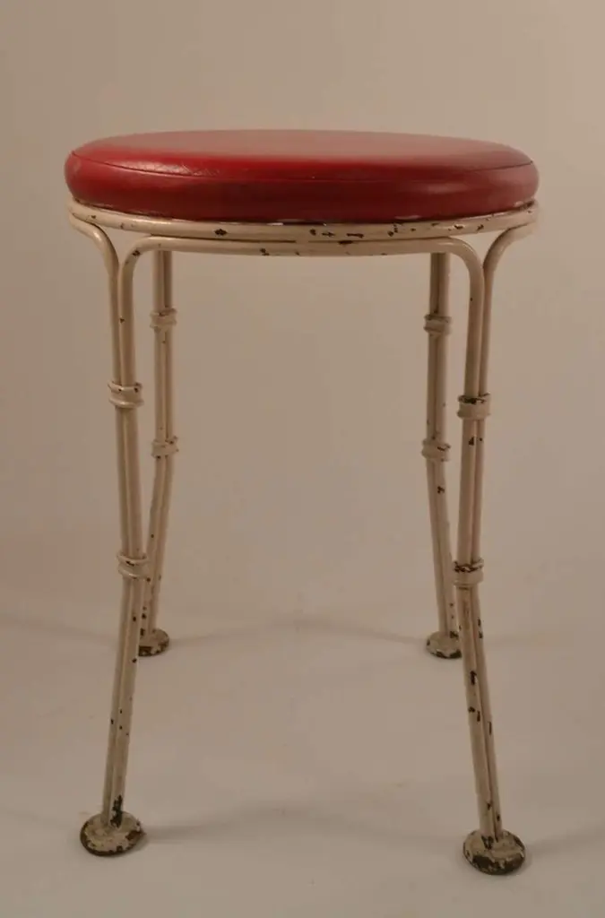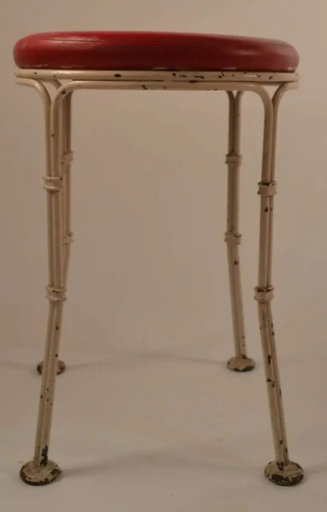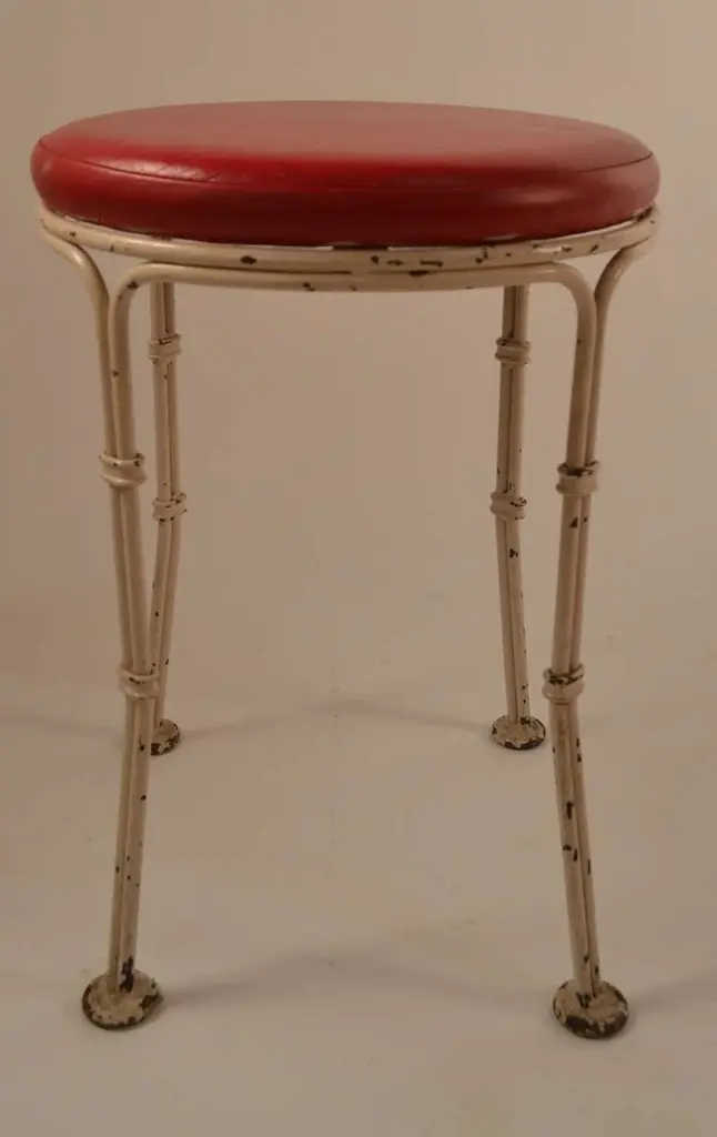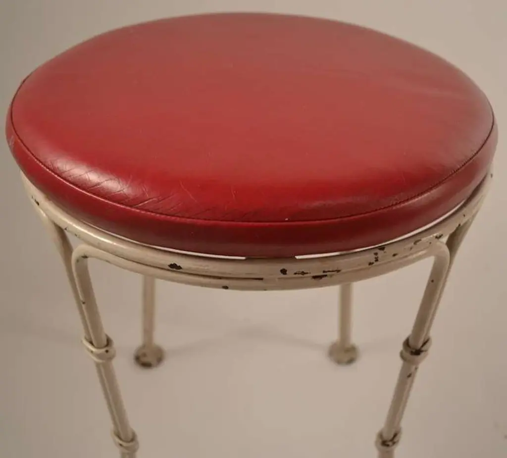 Stylish and well made stool from famous Borscht Belt Catskill NY resort, Kutcher's. We have six of these available, if you need a large set.