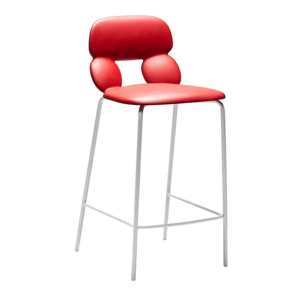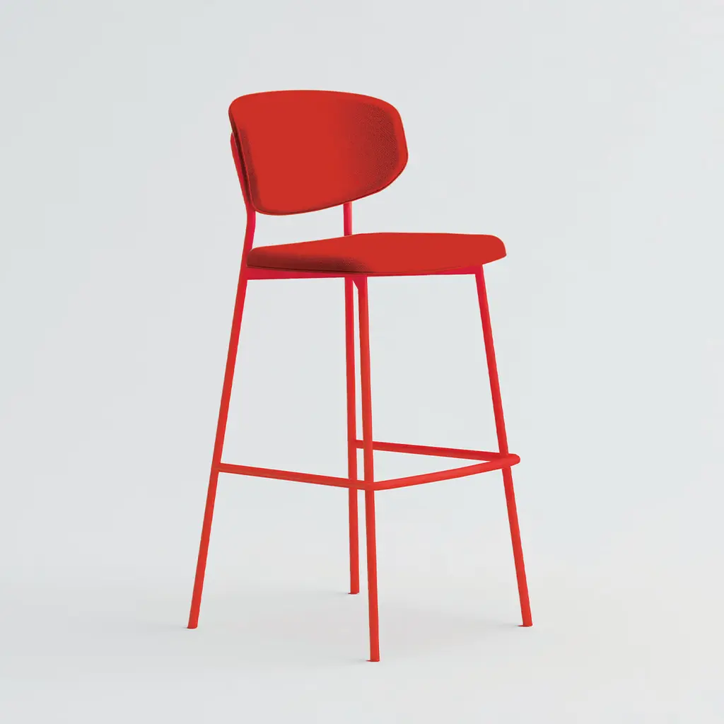 Sleekness and glamour merge in this stool Copiosa Lab designed for accenting contemporary decors with a pop of color. The padded 76cm-high seat and enveloping backrest - both covered in red fabric (Luna 307) - ensure long-lasting comfort either when having a quick lunch or sipping a drink at the kitchen counter. The steel frame is finished in red (RAL 3020) for striking monochromatic look.