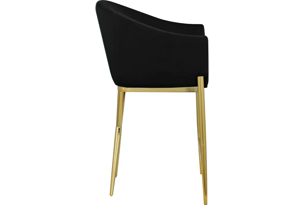 The Xavier Black Velvet Upholstered Counter Height Stool with Gold Finish is a perfect addition to your dining room or kitchen. Its modern design features a luxurious velvet fabric paired with an engineered wood and iron construction, ensuring durability and comfort. The tall frame and recessed armrests provide a stylish and supportive seating experience.